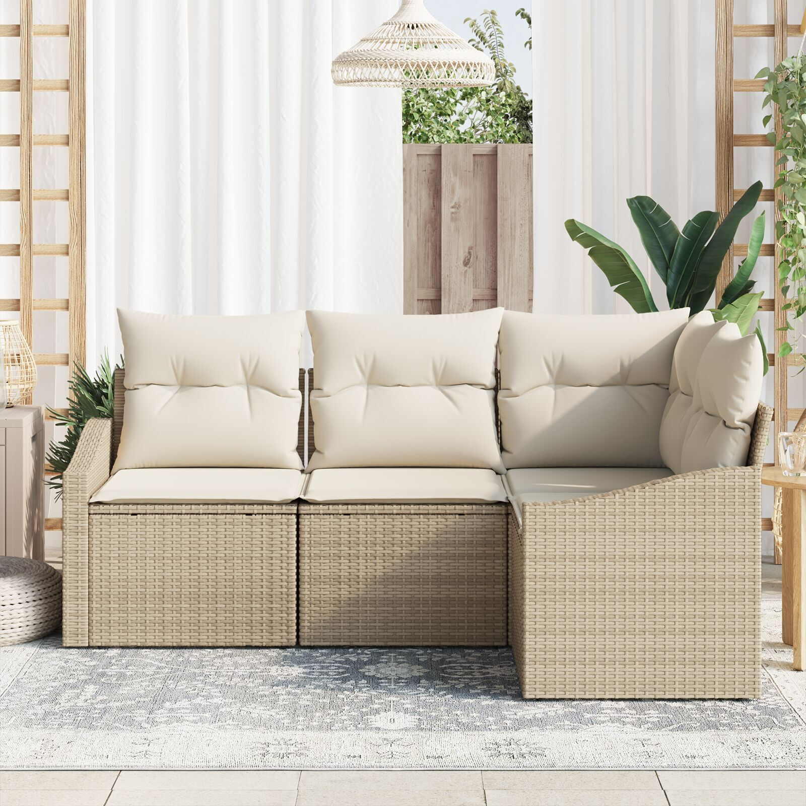 - Construcție Puternică: Setul ăsta din ratan sintetic rezistent la UV e făcut să dureze, păstrându-și stilul elegant indiferent de vreme.