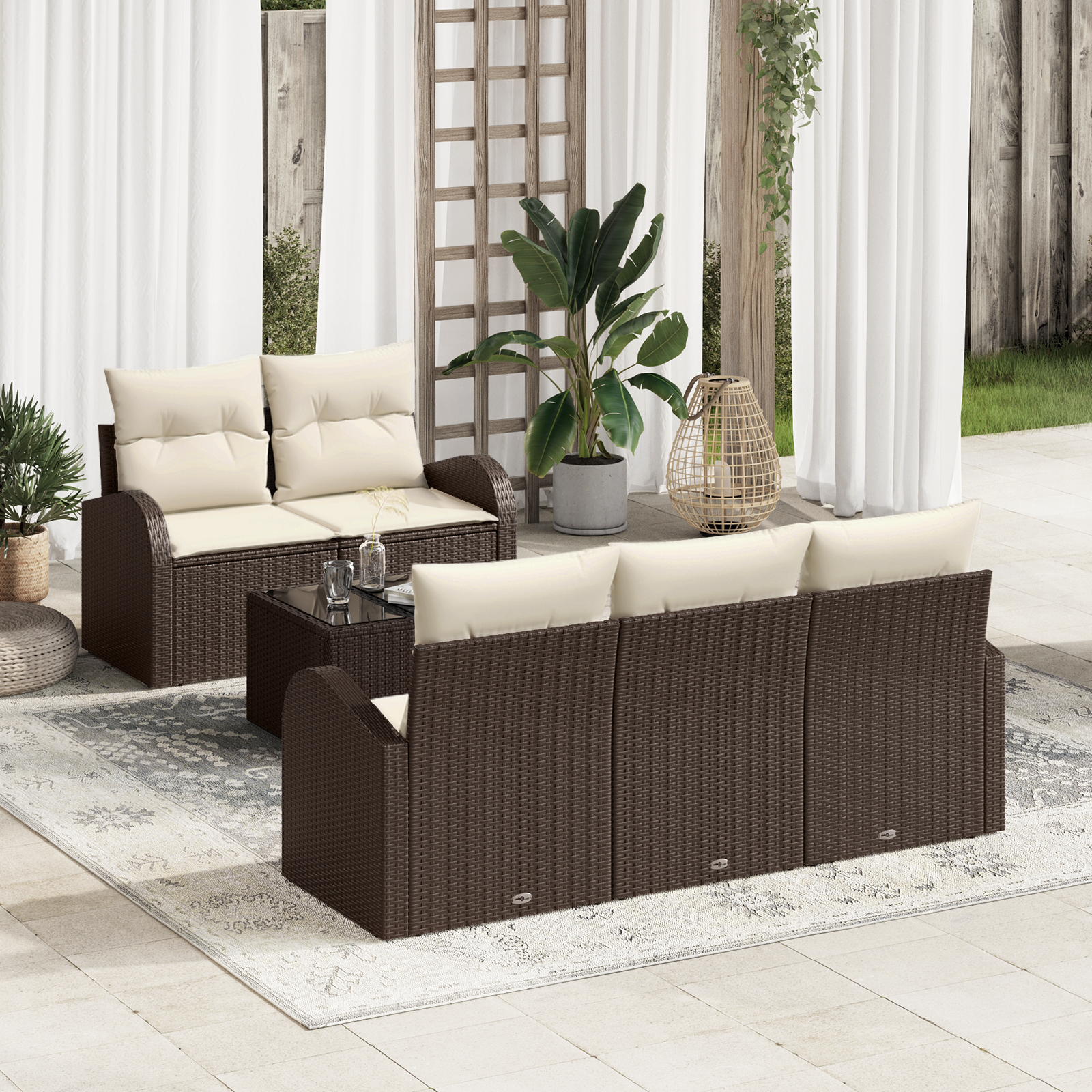 Set Canapea Grădină cu 6 Piese și Perne Maro din Ratan Polimer GartenMobel Dekor