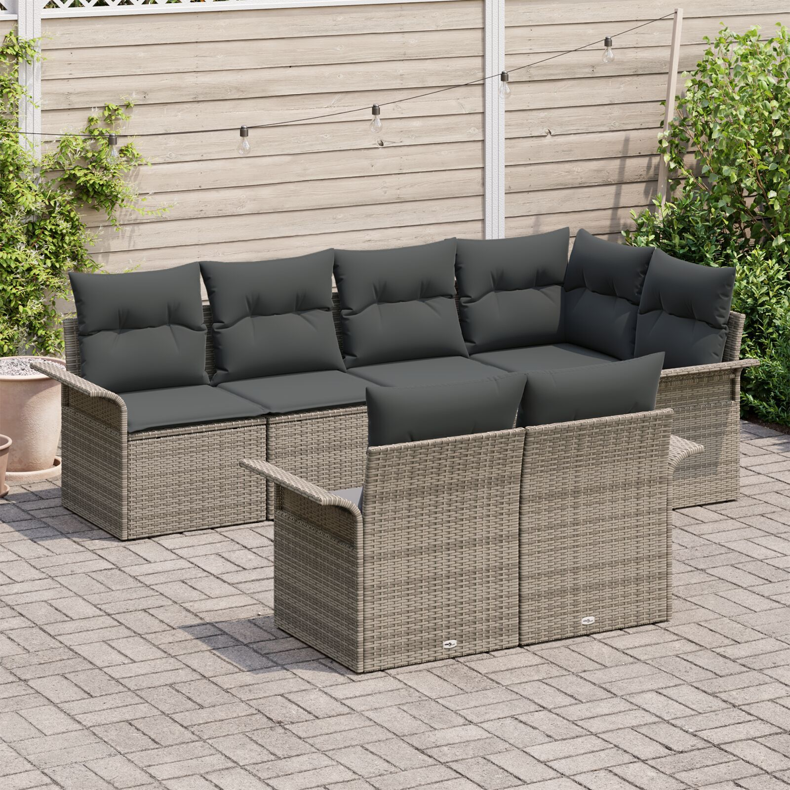Set Canapea Grădină cu 7 Piese Gri Poliratan, Canapea Grădină cu 2 Locuri Depozitare Perne Gri Poliratan GartenMobel Dekor