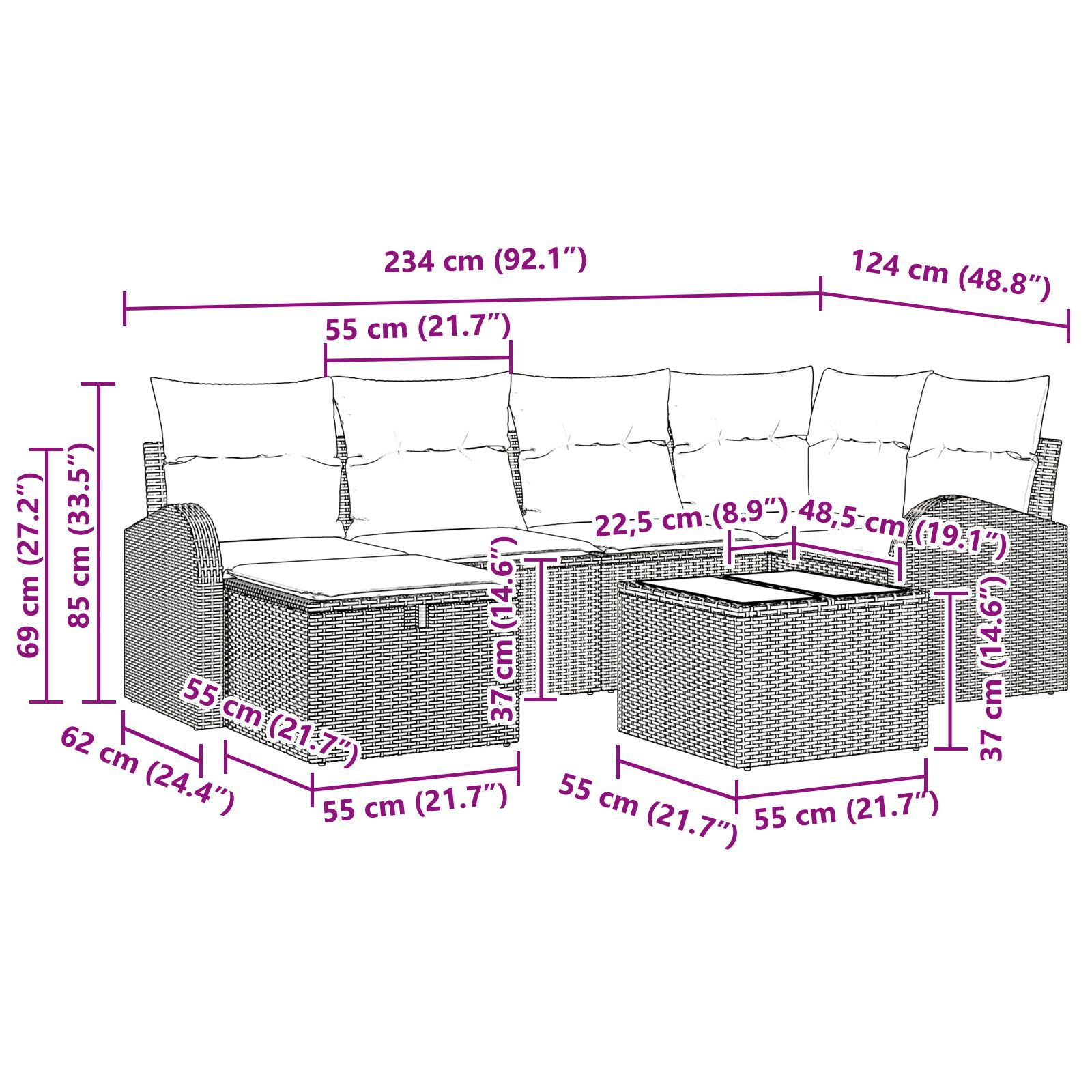 Set canapea grădină cu 7 piese și perne, negru, poliratan GartenMobel Dekor