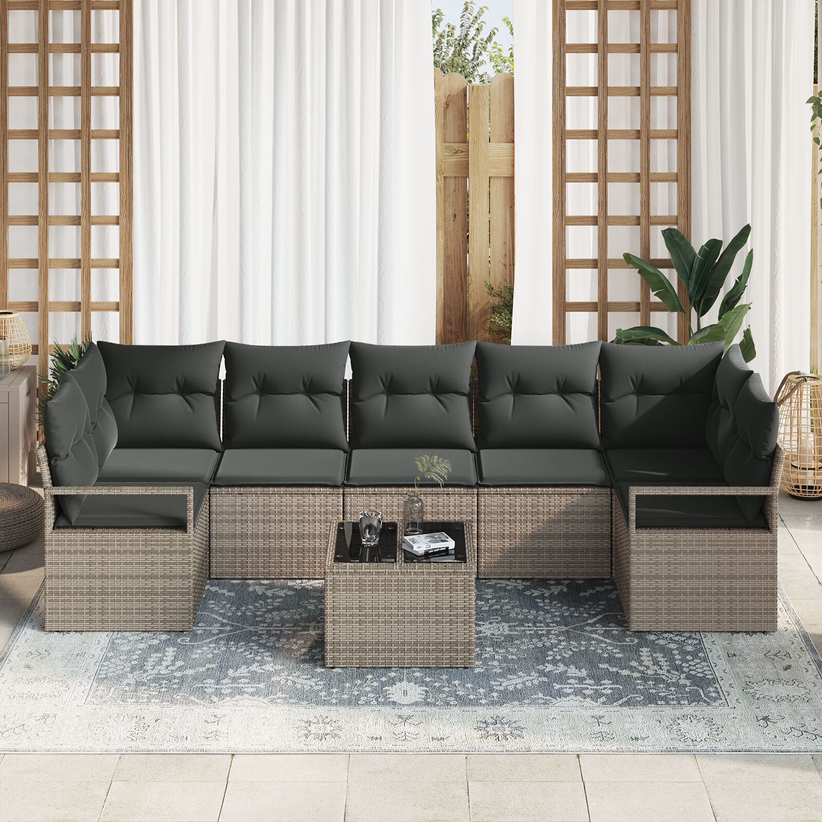 Set canapea grădină cu 8 piese gri din poli ratan, Set canapea 2 persoane gri din poli ratan GartenMobel Dekor