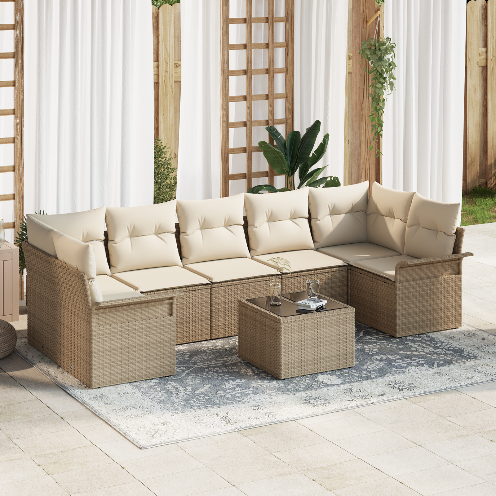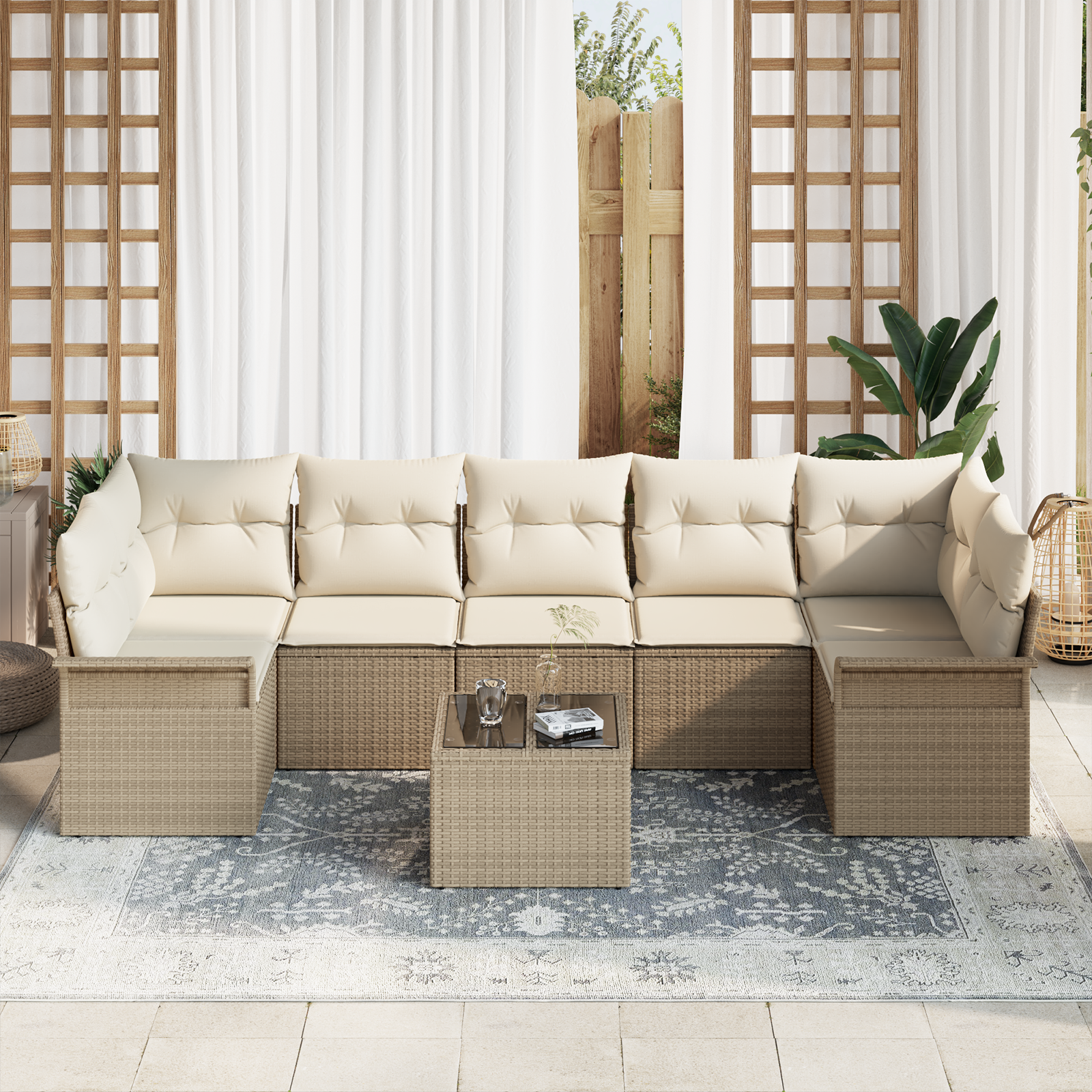 Set Canapea Grădină cu 8 Piese și Perne Bej Ratan Polimeric GartenMobel Dekor