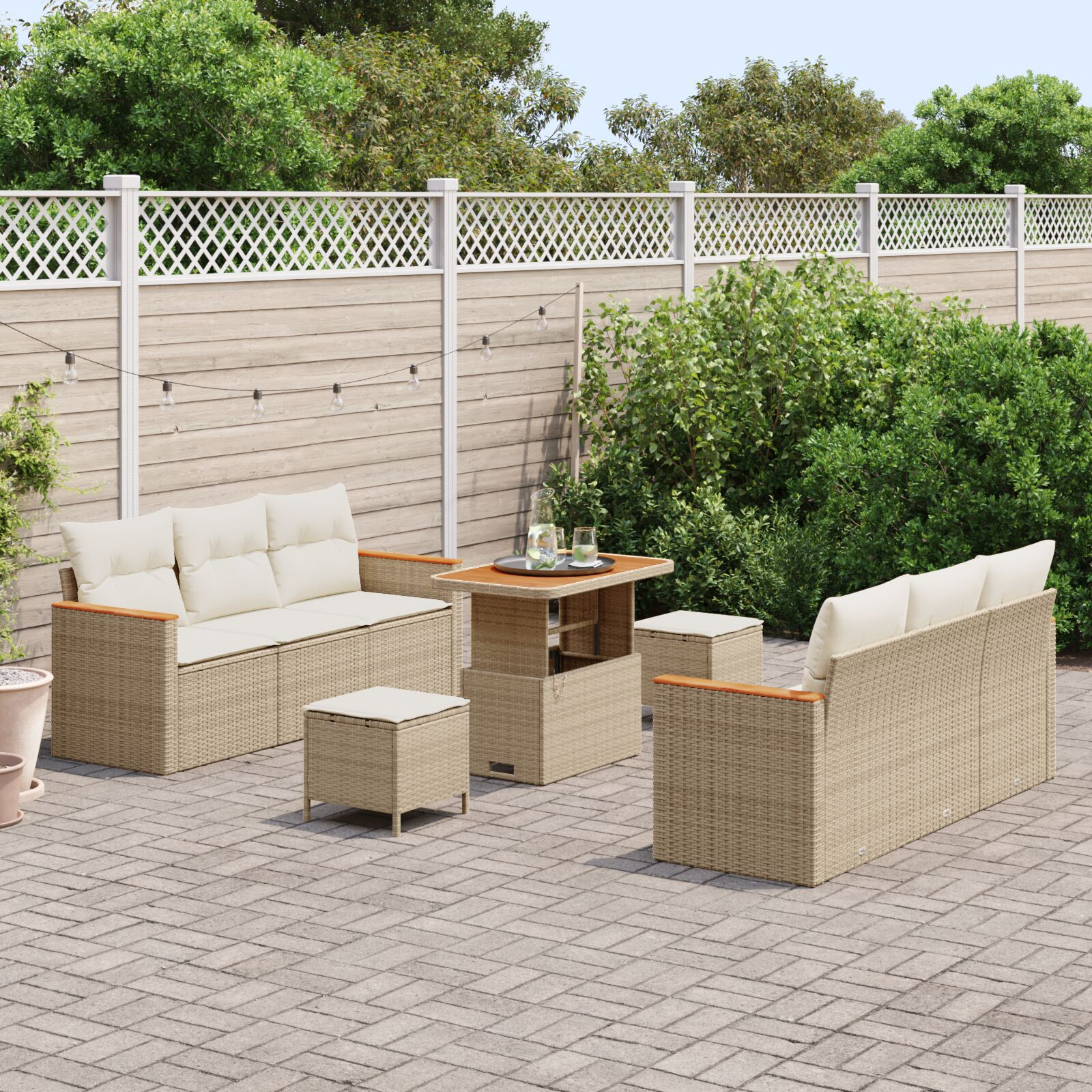 Set Canapea Grădină cu 9 Piese și Perne Bej, Cadru Ratan Acacia, Set Dining Grădină cu 3 Piese și Perne Bej, Cadru Ratan Acacia GartenMobel Dekor