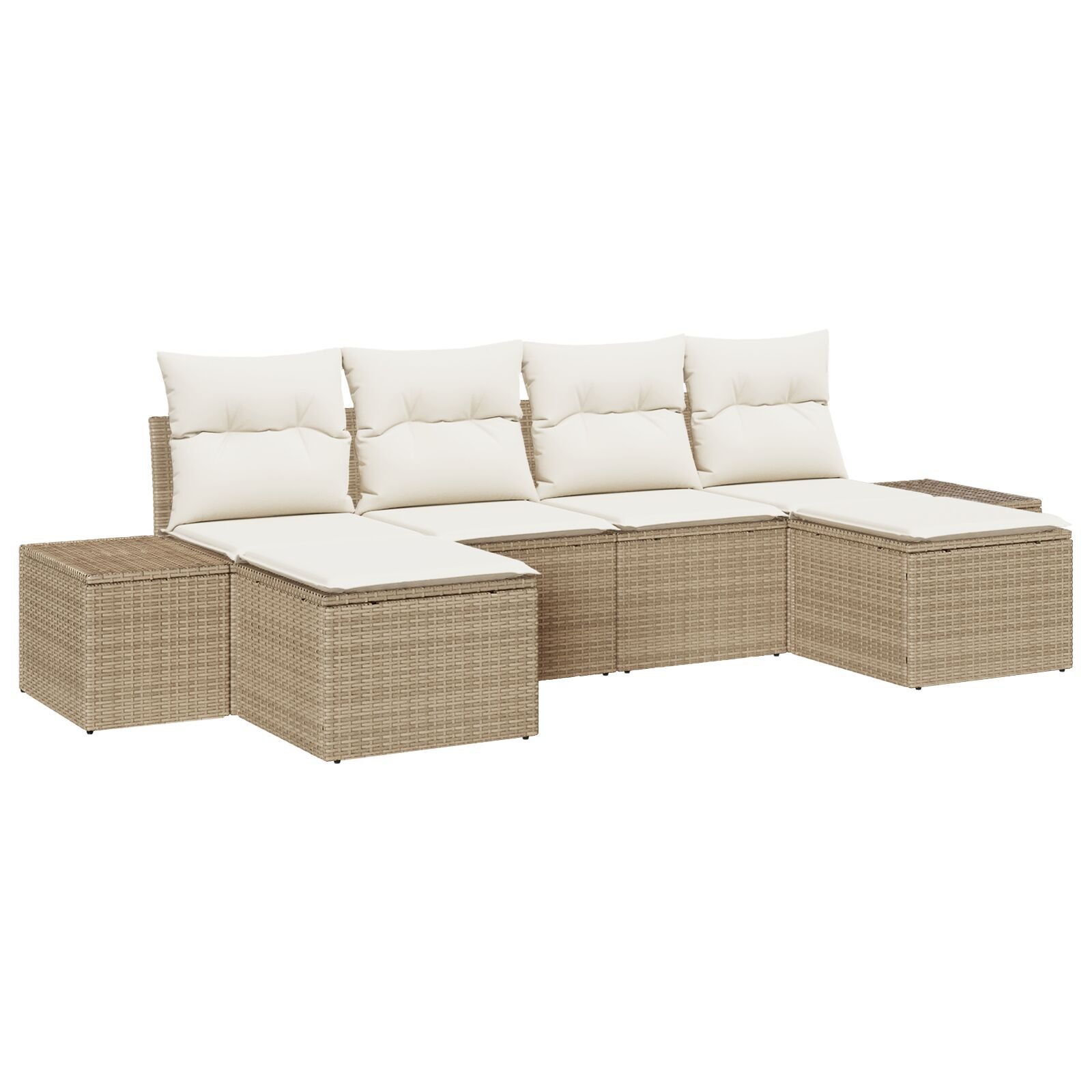 Setul de Canapea pentru Exterior oferă un loc stylish și confortabil pentru grădini, patio și balcoane. Ratanul bej modern cu perne crem aduce un vibe plăcut, având loc pentru șase adulți să se relaxeze.