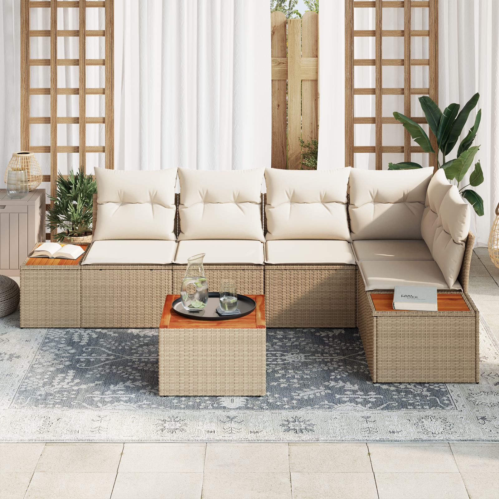 Set Canapea Grădină cu Perne Bej Poliratan Acacia, Canapea Grădină 2 Locuri cu Spațiu Depozitare, Perne Bej Poliratan GartenMobel Dekor