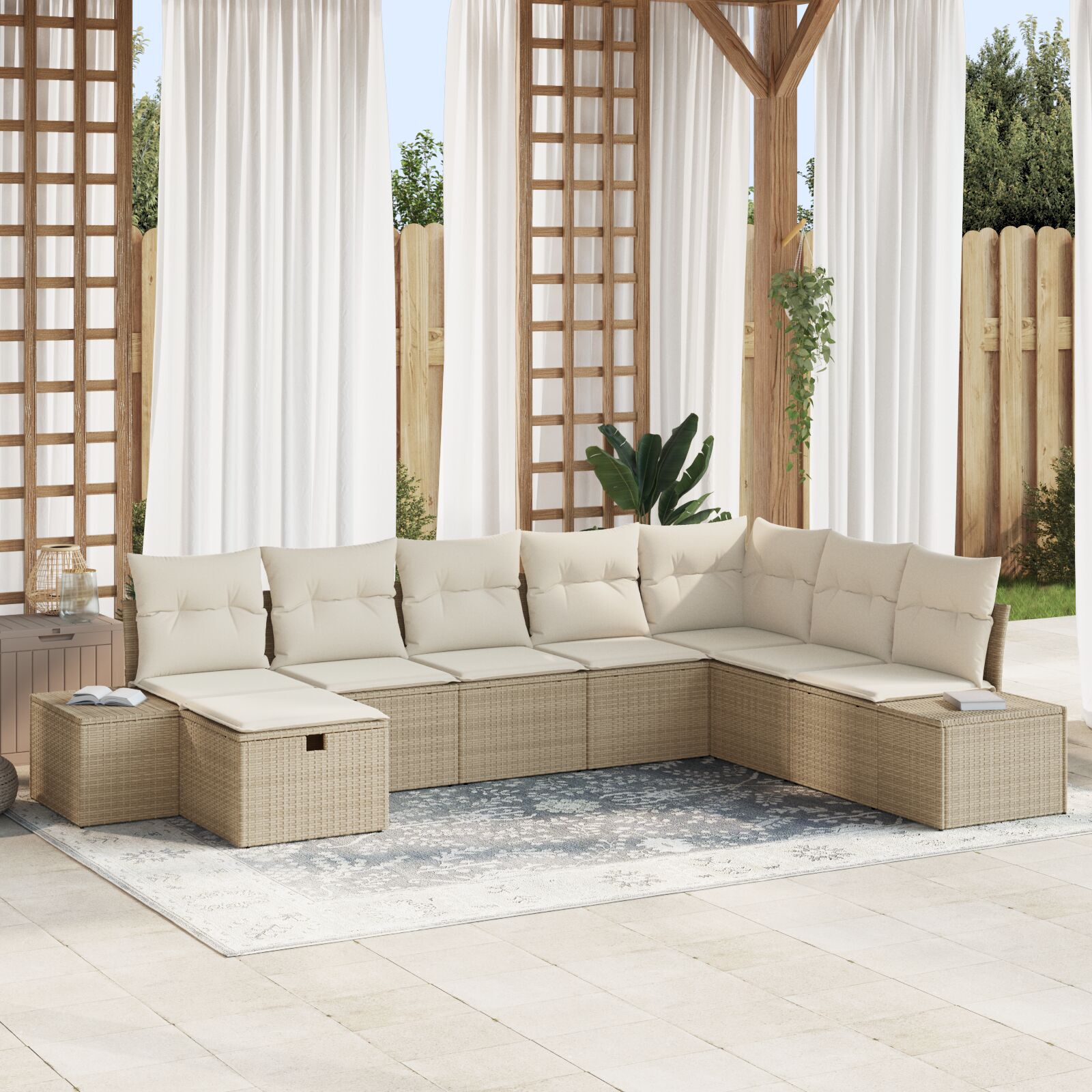 Setul de canapele de grădină vidaXL cu 8 piese combină designul modern cu utilitatea, fiind perfect pentru petrecerile în grădină sau relaxarea afară. E realizat din ratan poli robust și perne confortabile din poliester într-un bej cald, ideal ca familia și prietenii să se bucure de timp de relaxare, unind confortul cu stilul.