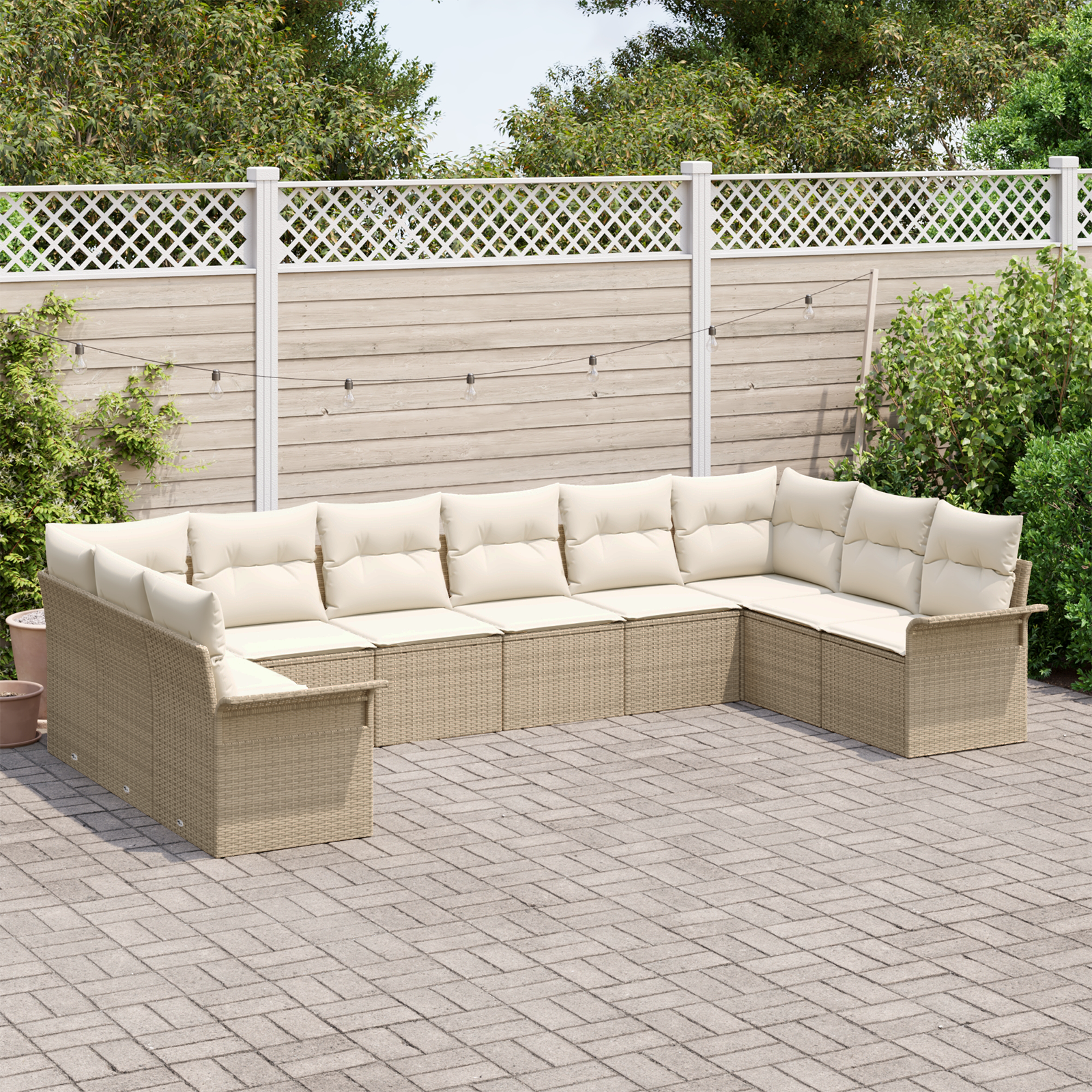 Set canapea grădină de 10 piese cu perne bej din ratan sintetic GartenMobel Dekor