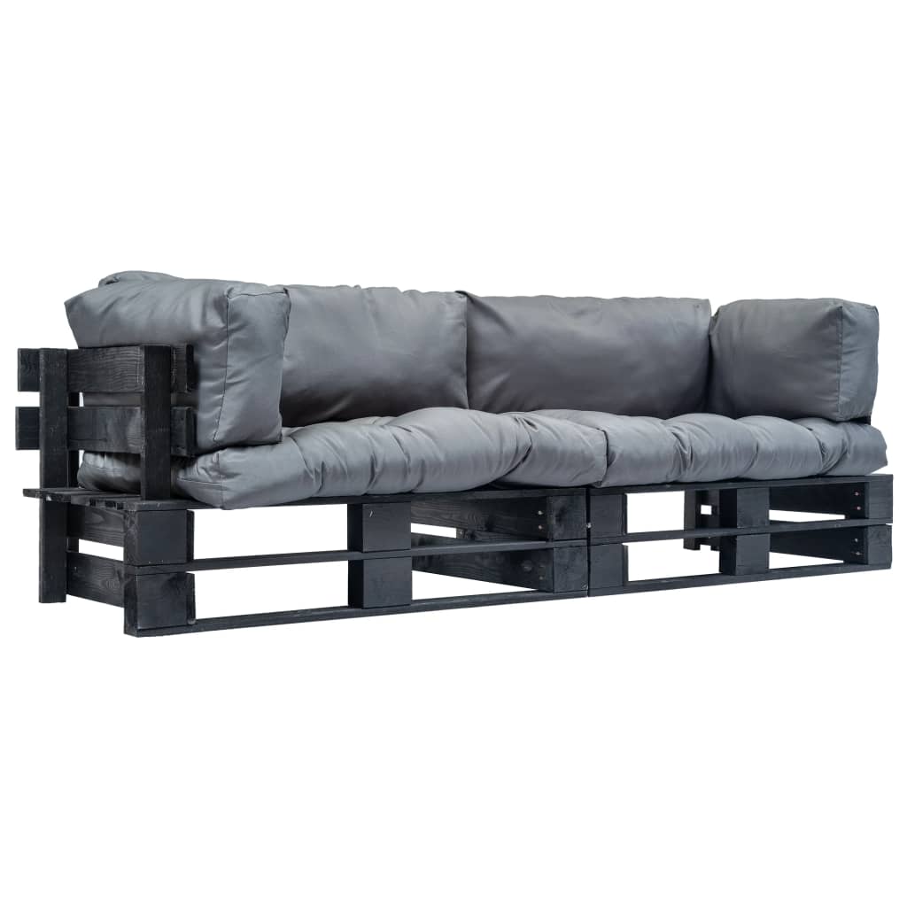 Set canapea grădină paleți cu perne gri, 2 piese, lemn de pin GartenMobel Dekor