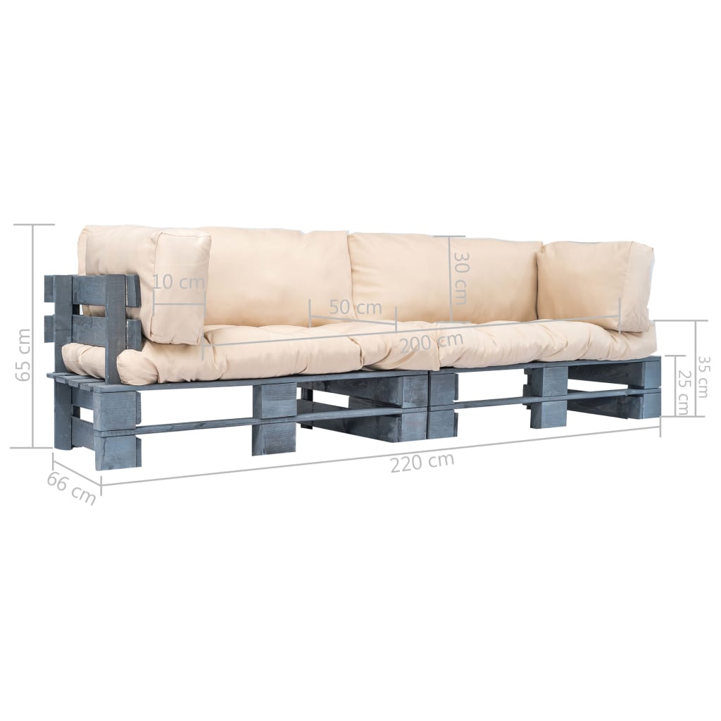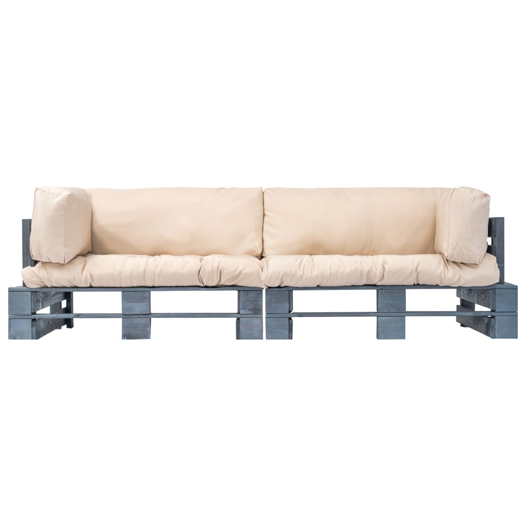 Set canapea grădină paleți cu perne nisipii, 2 piese, lemn pin GartenMobel Dekor