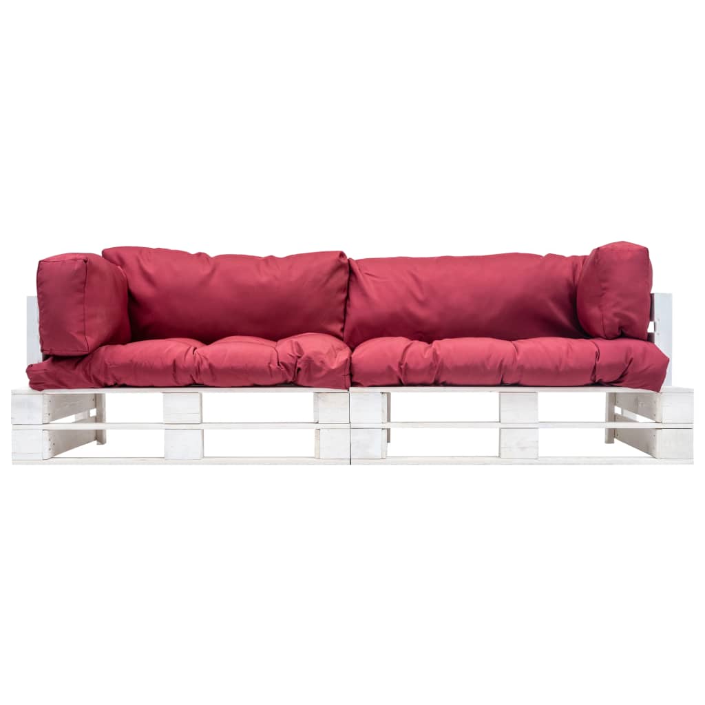 Set canapea grădină paleți perne roșii, 2 piese, lemn pin GartenMobel Dekor
