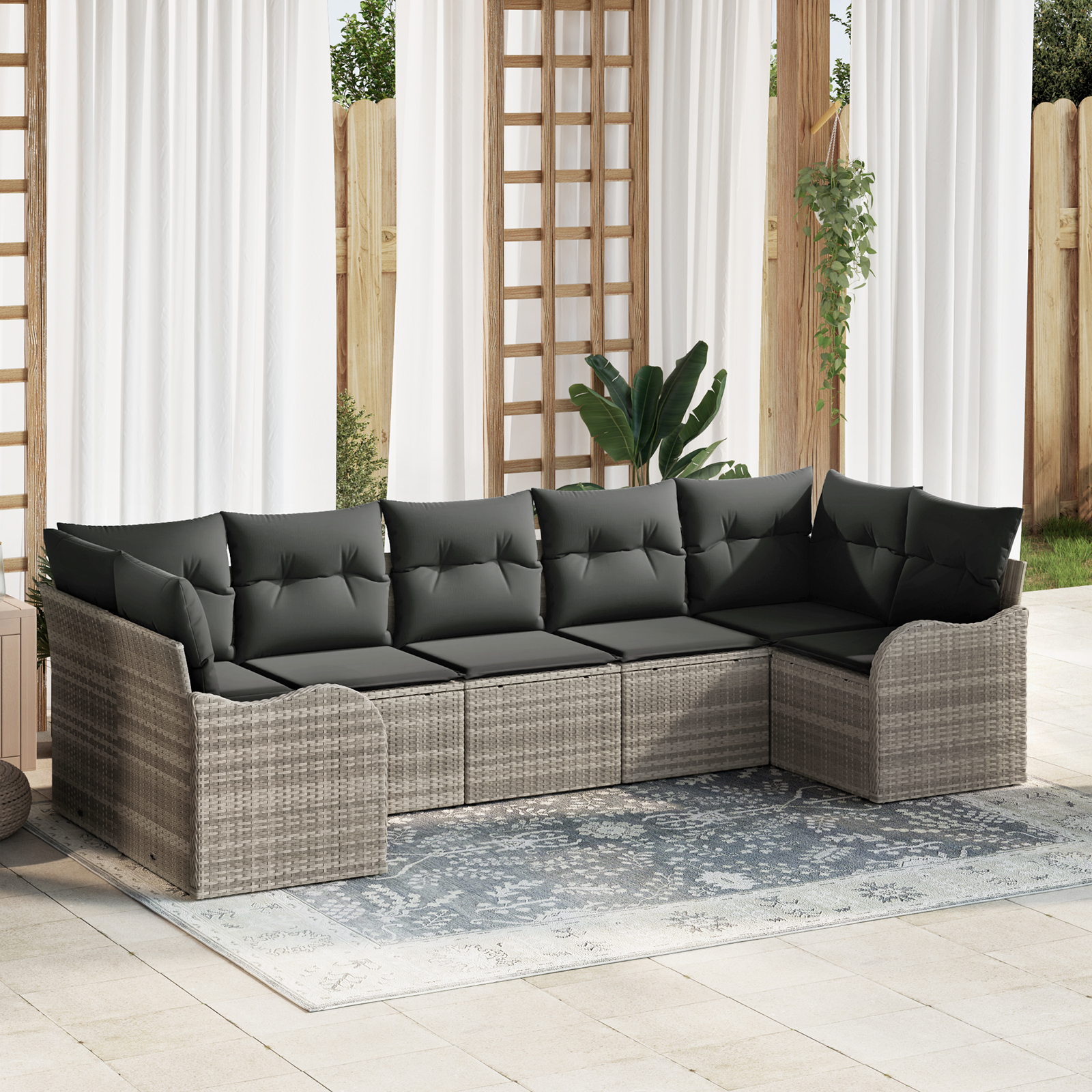 Set canapea pentru grădină din 7 piese cu perne gri deschis din ratan poli GartenMobel Dekor