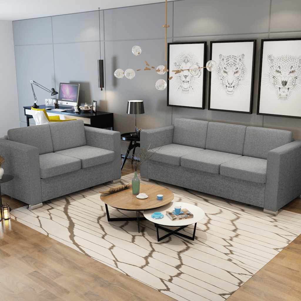 Set canapele, 2 piese, gri deschis, material textil GartenMobel Dekor