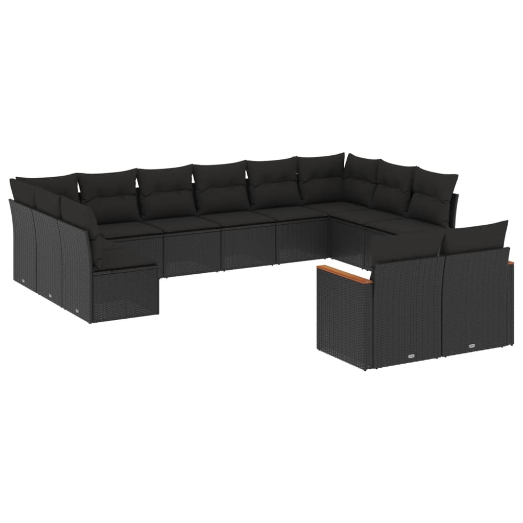 Set canapele de grădină, 12 piese, cu perne, negru, poliratan GartenMobel Dekor
