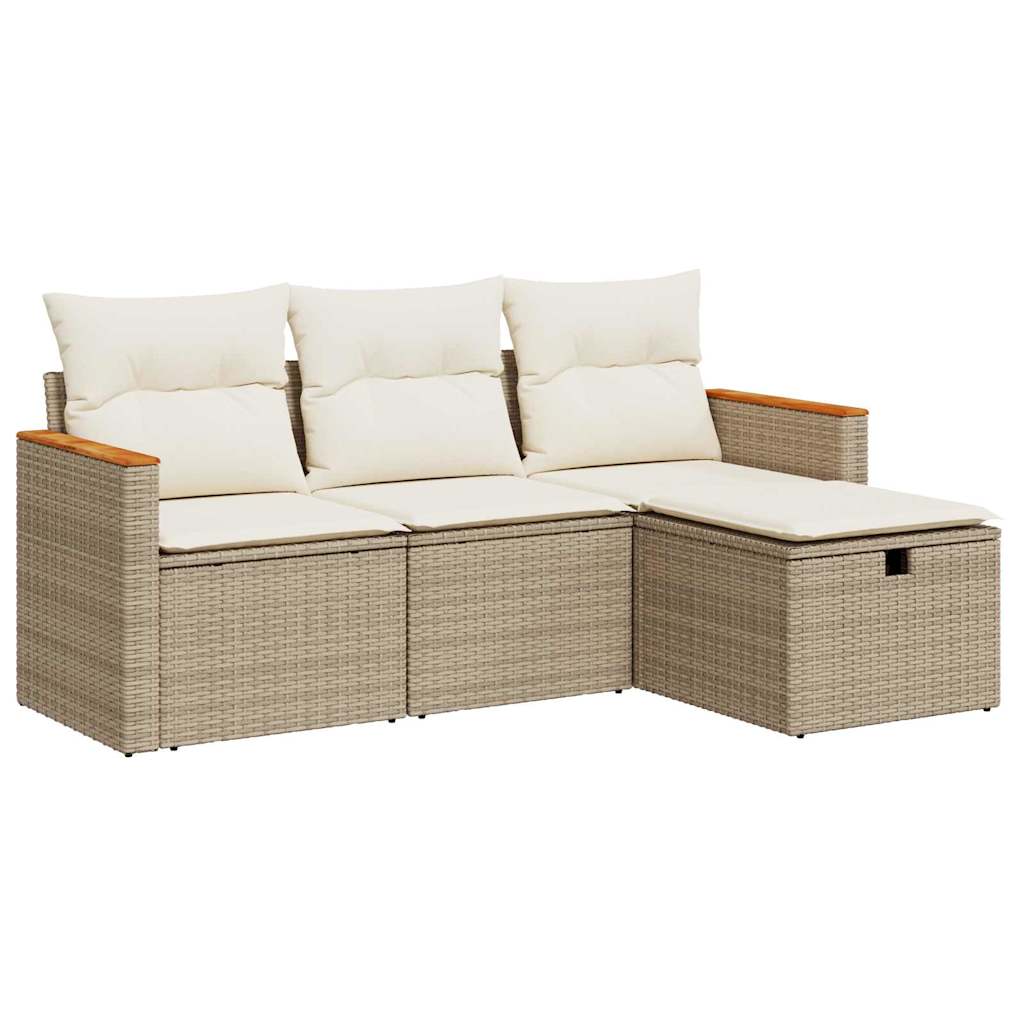 Set canapele de grădină, 4 piese, cu perne, bej, poliratan GartenMobel Dekor