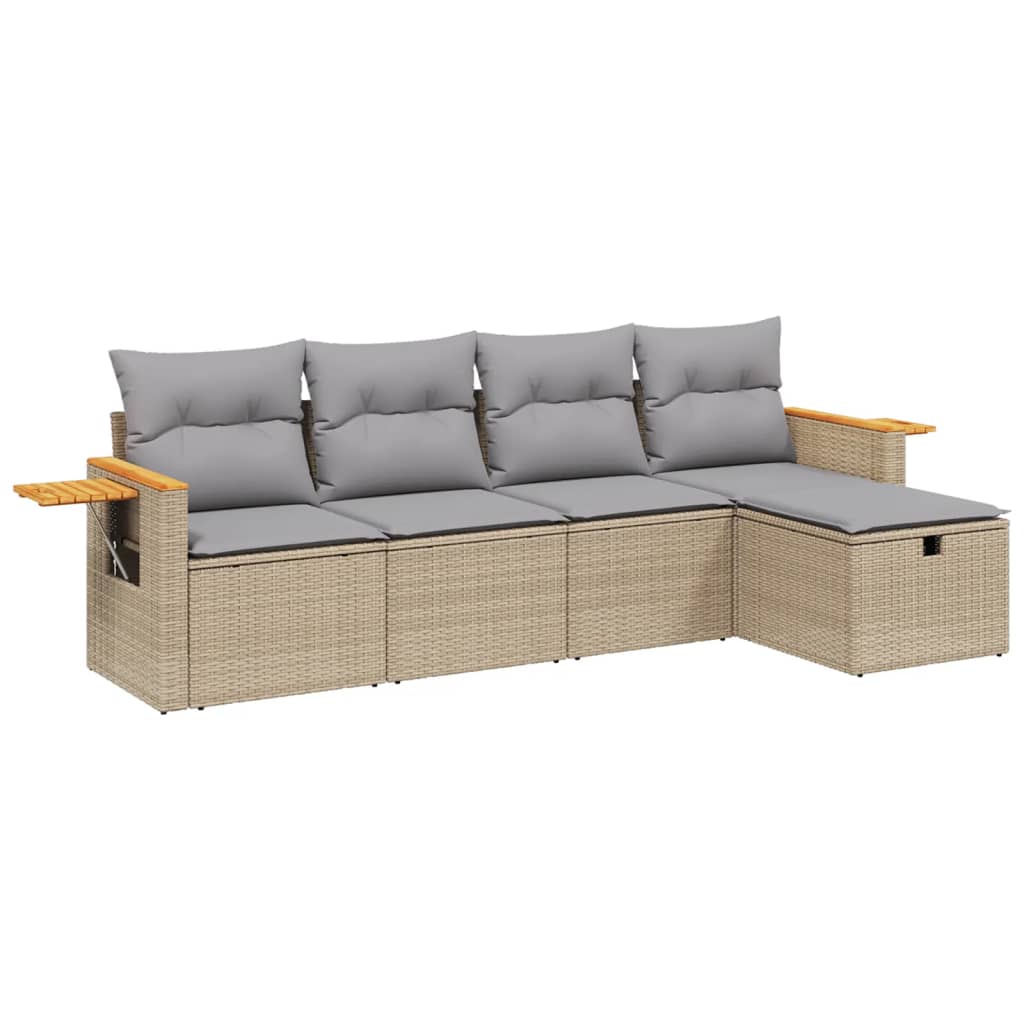 Set canapele de grădină, 5 piese, cu perne, bej, poliratan GartenMobel Dekor
