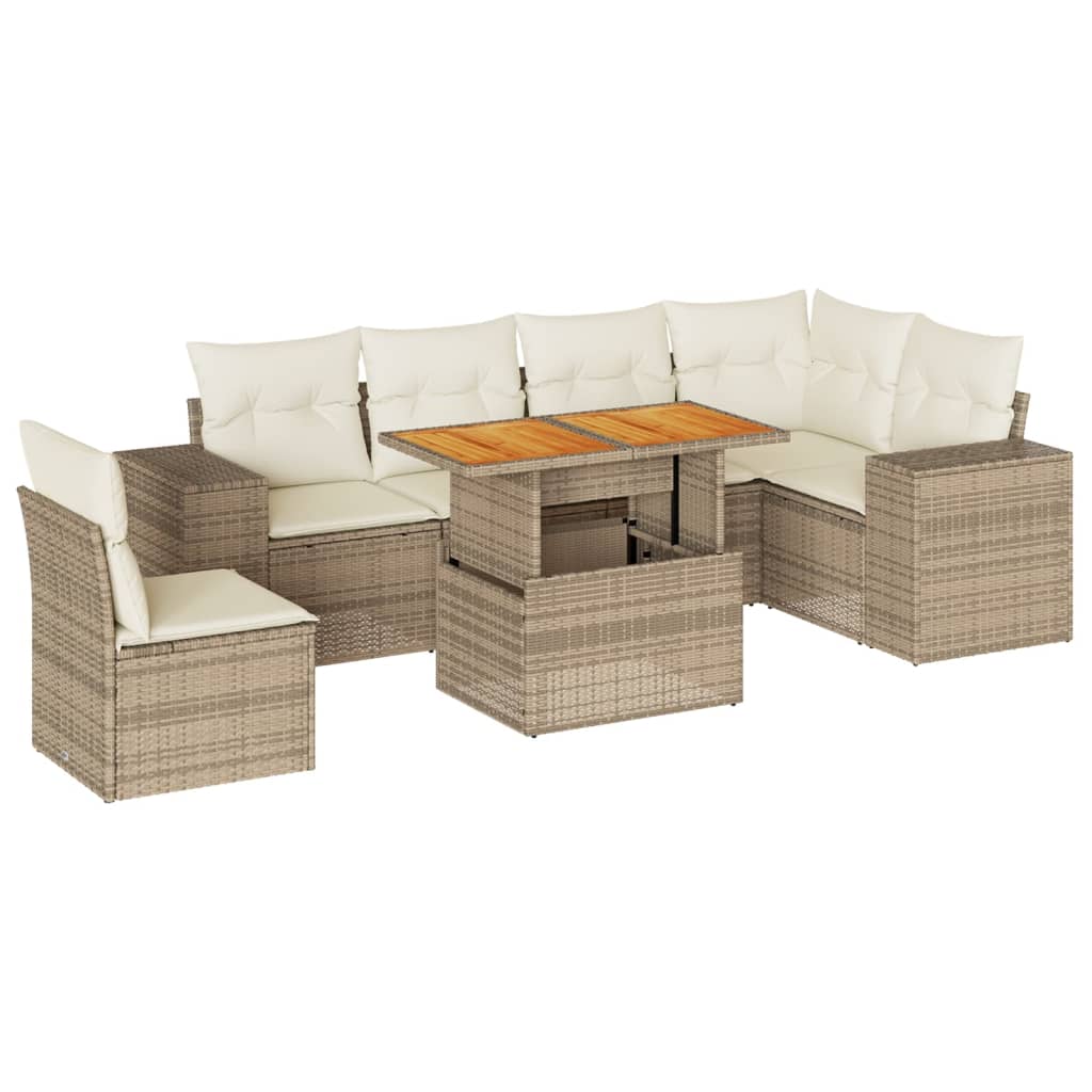 Set canapele de grădină, 7 piese, cu perne, bej, poliratan GartenMobel Dekor