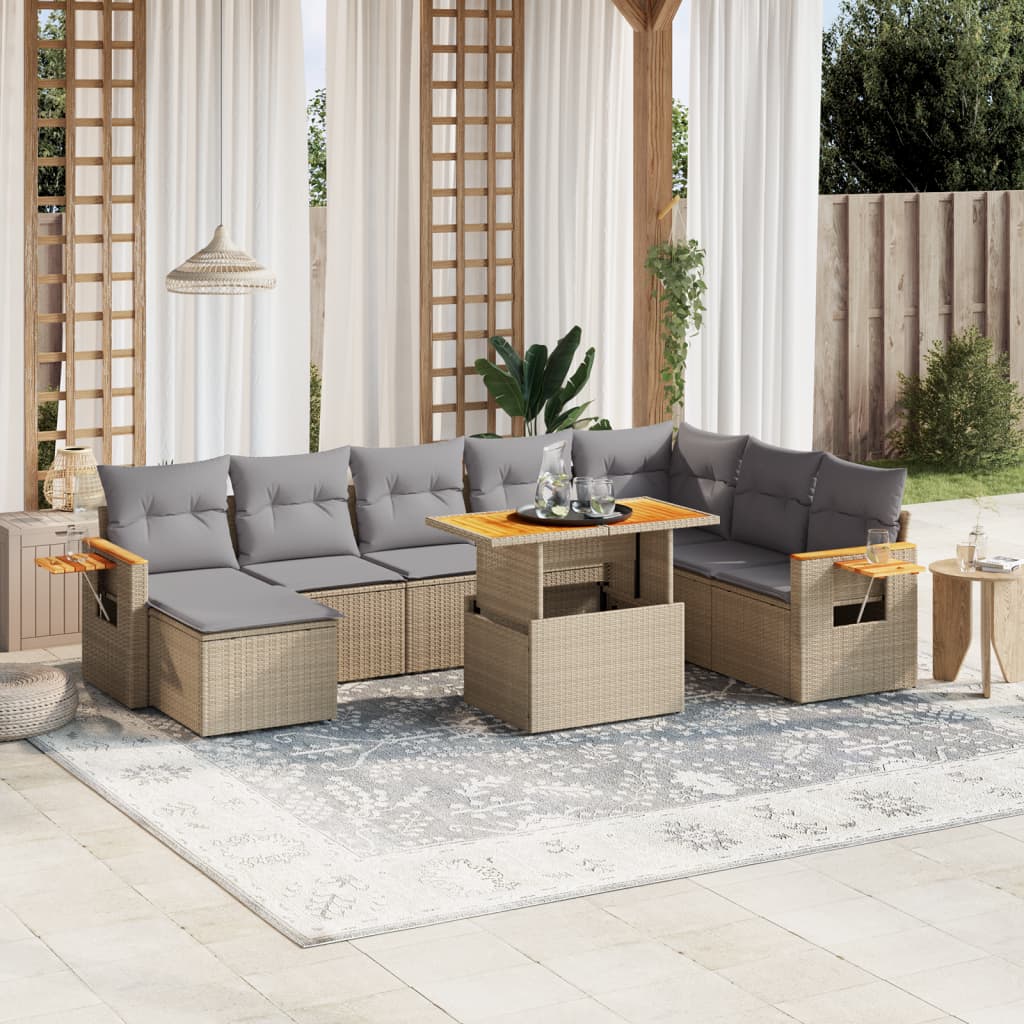 Set canapele de grădină, 8 piese, cu perne, bej, poliratan GartenMobel Dekor