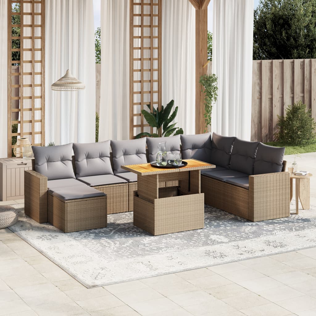 Set canapele de grădină, 9 piese, cu perne, bej, poliratan GartenMobel Dekor