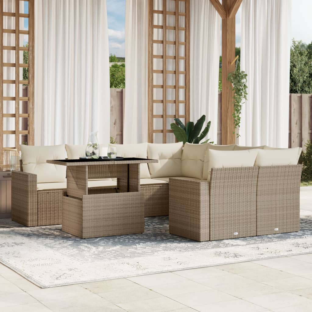 Set canapele de grădină, 9 piese, cu perne, bej, poliratan GartenMobel Dekor