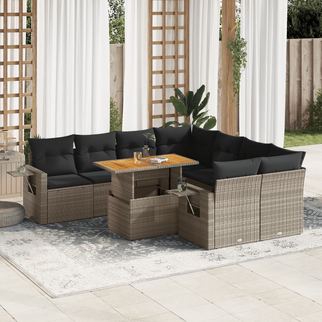 Set canapele de grădină, 9 piese, cu perne, gri, poliratan GartenMobel Dekor