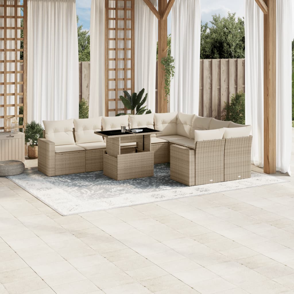 Set canapele de grădină cu perne, 10 piese, bej, poliratan GartenMobel Dekor