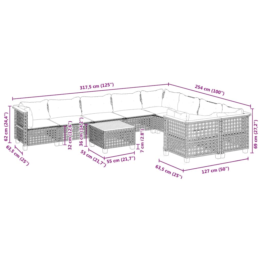 Specificatii Set canapele grădină perne, 10 piese,