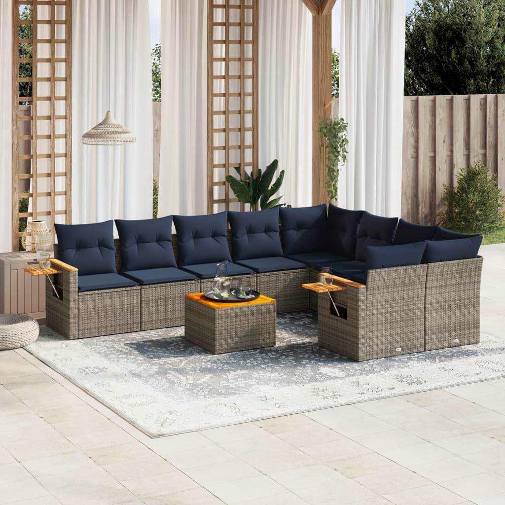Set canapele de grădină cu perne, 10 piese, gri, poliratan GartenMobel Dekor