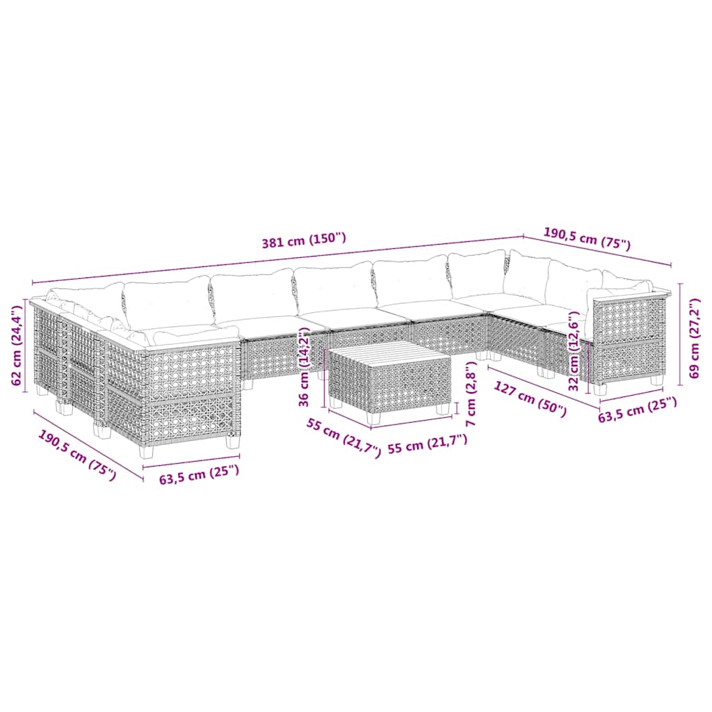 Set canapele de grădină cu perne, 11 piese, bej, poliratan GartenMobel Dekor