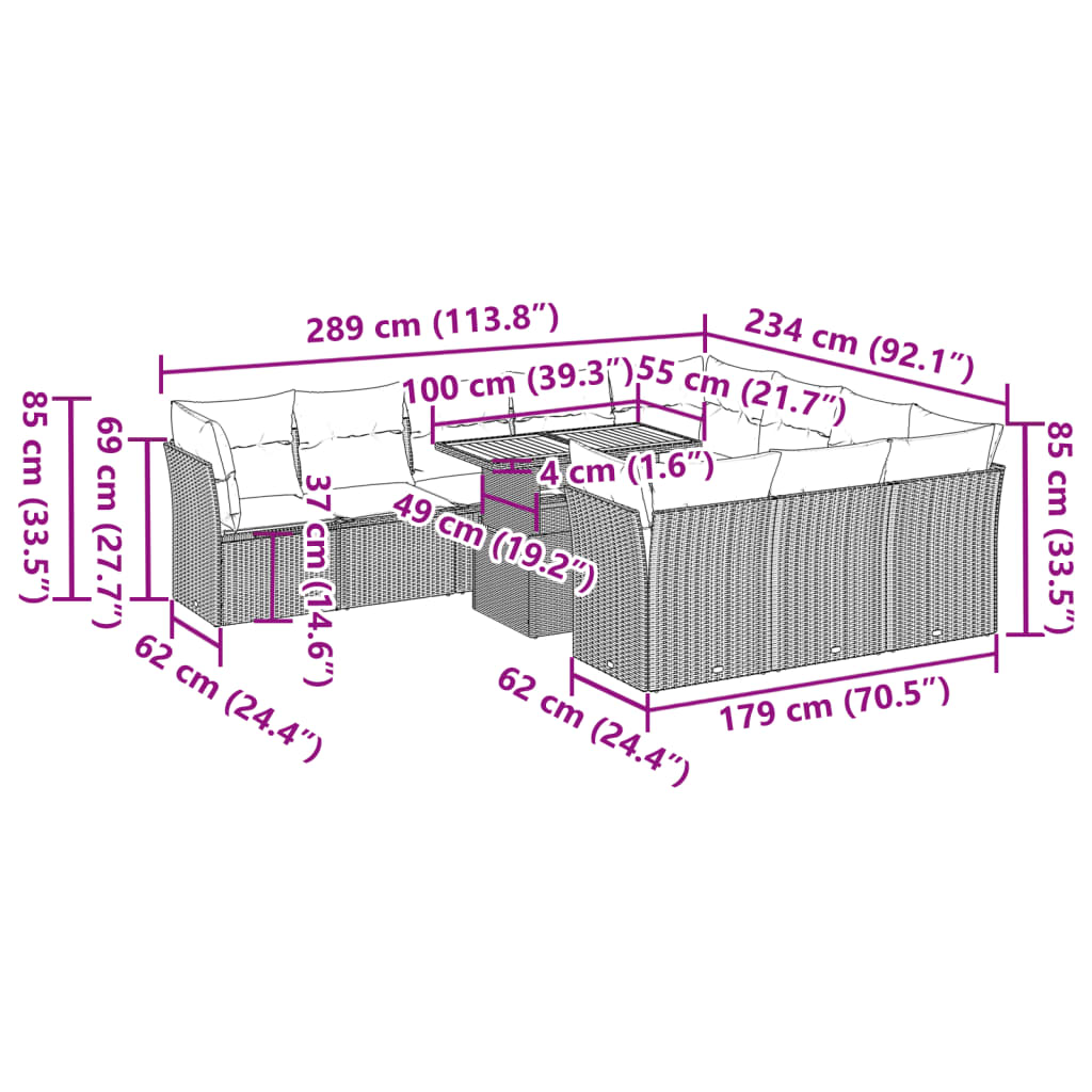 Set canapele de grădină cu perne, 11 piese, gri, poliratan GartenMobel Dekor