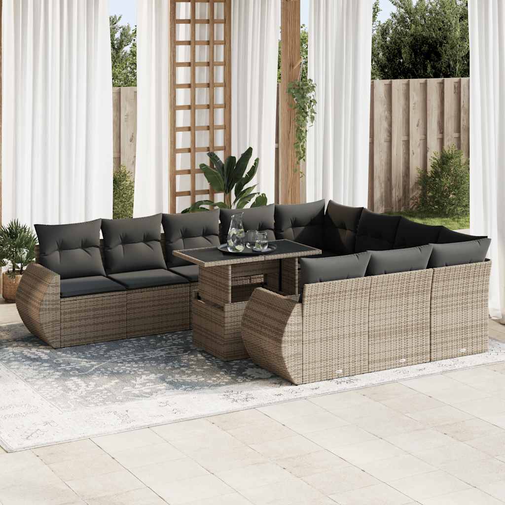 Set canapele de grădină cu perne, 11 piese, gri, poliratan GartenMobel Dekor