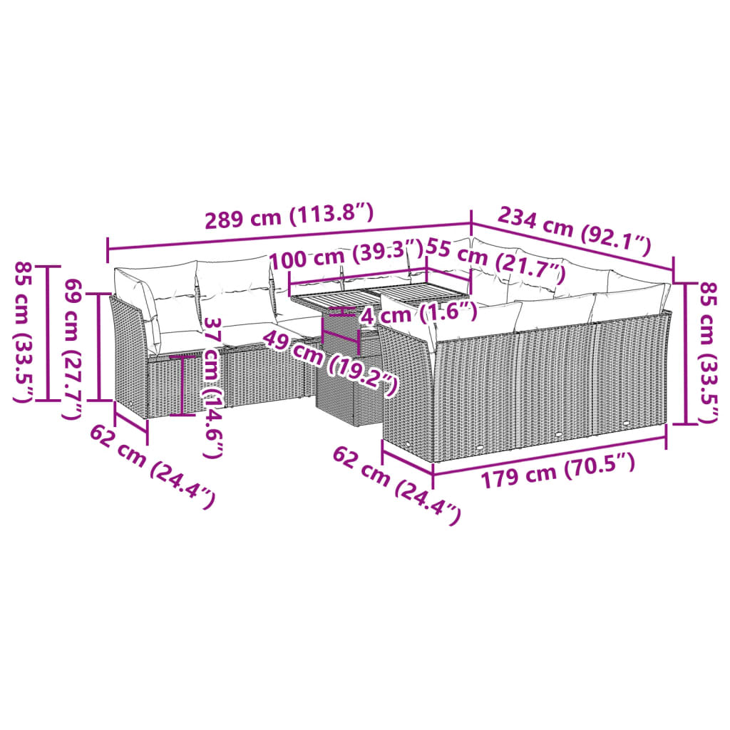 Set canapele de grădină cu perne, 11 piese, negru, poliratan GartenMobel Dekor