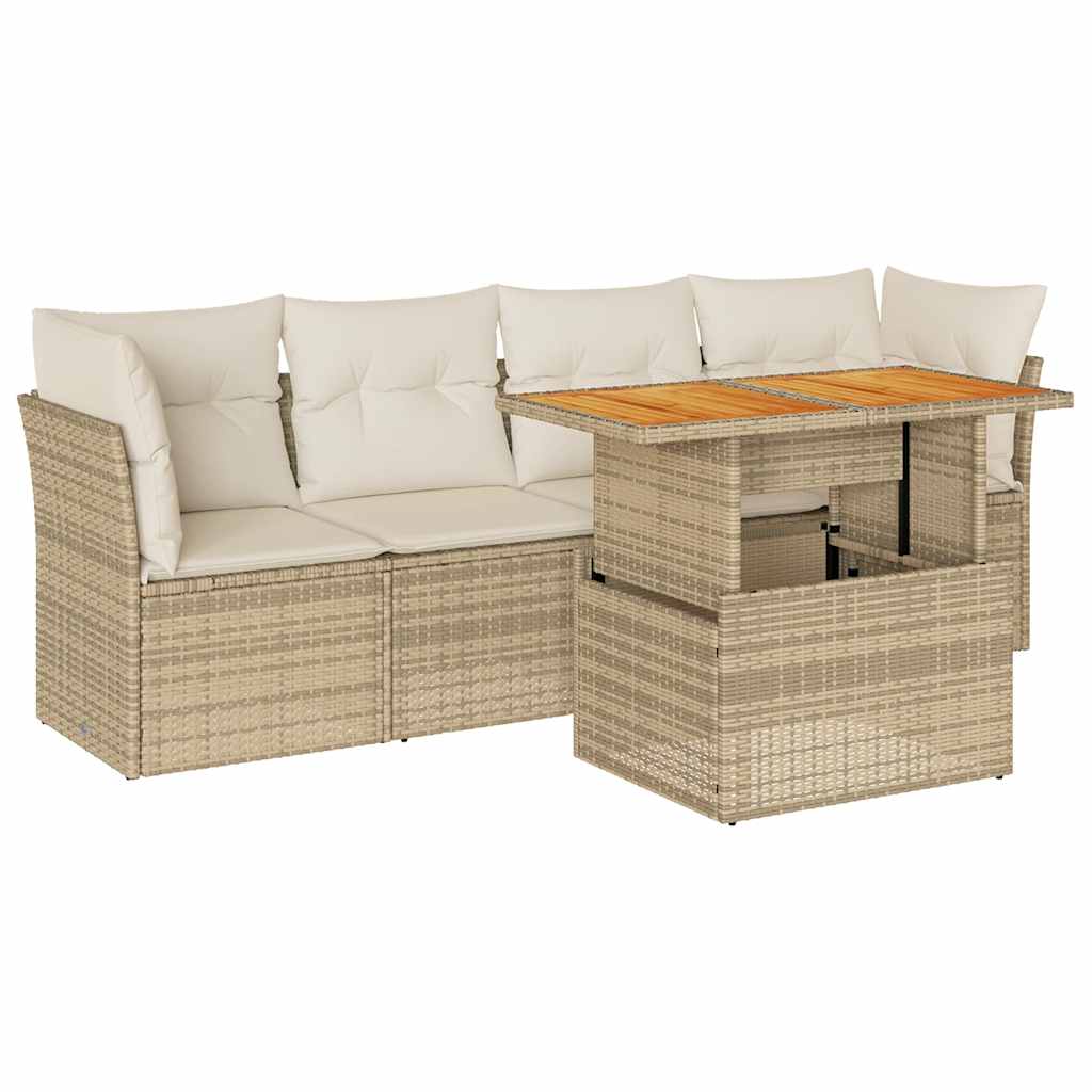 Set canapele de grădină cu perne, 5 piese, bej, poliratan GartenMobel Dekor