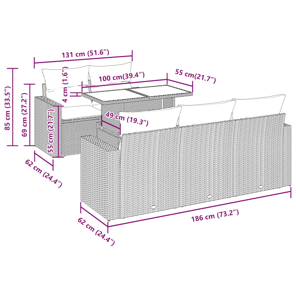 Set canapele de grădină cu perne, 6 piese, bej, poliratan GartenMobel Dekor