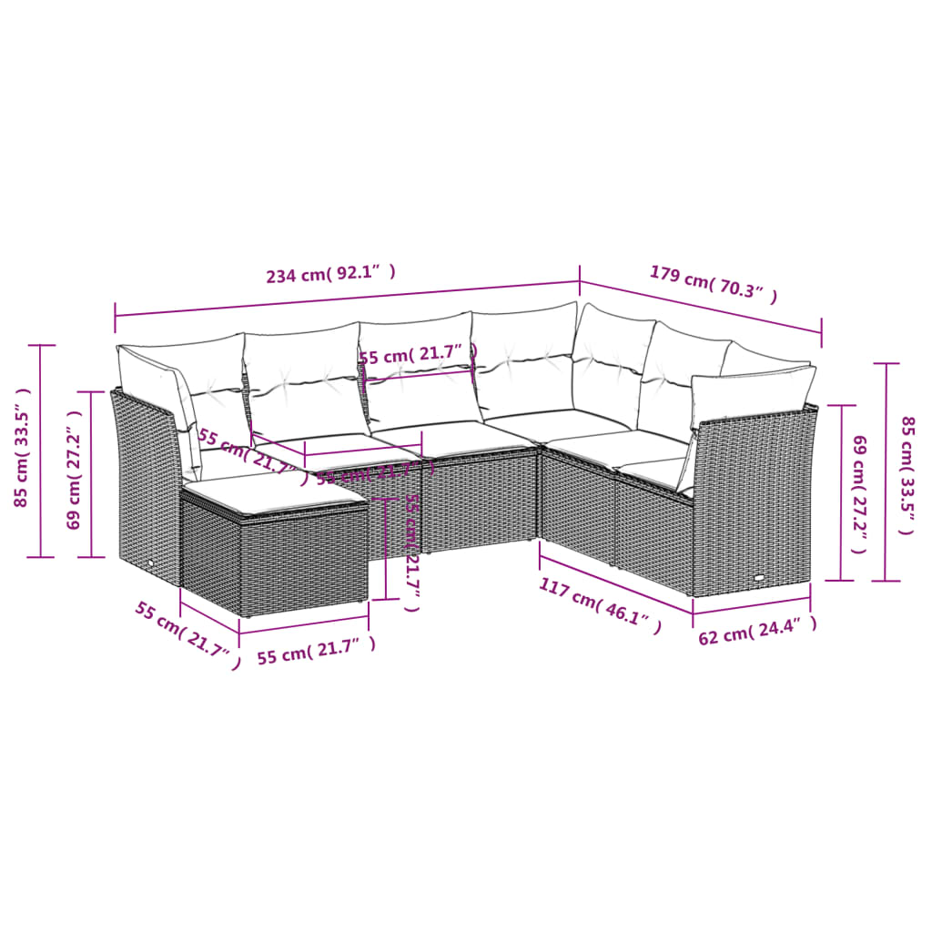 Set canapele de grădină cu perne, 7 piese, maro, poliratan GartenMobel Dekor