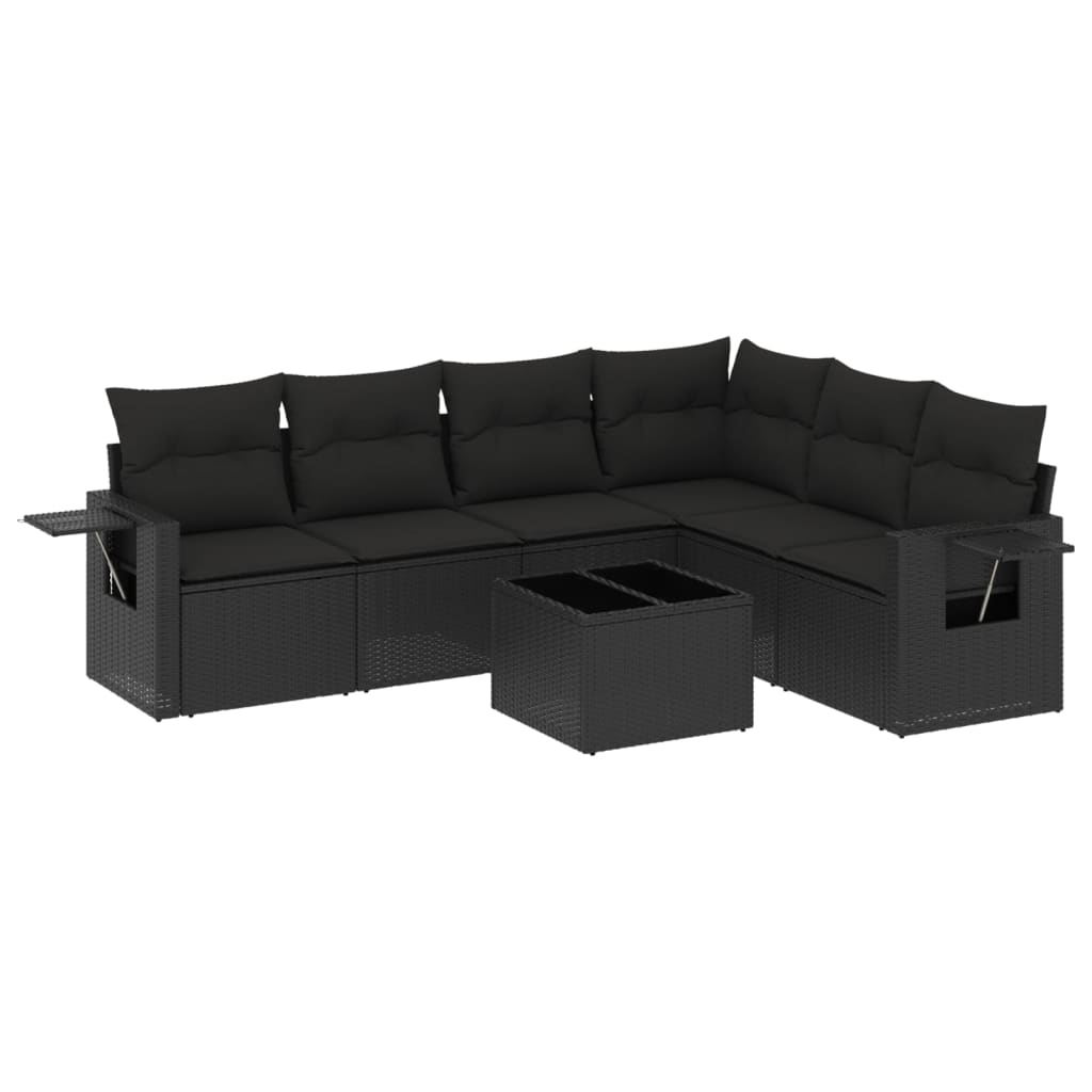 Set canapele de grădină cu perne, 7 piese, negru, poliratan GartenMobel Dekor