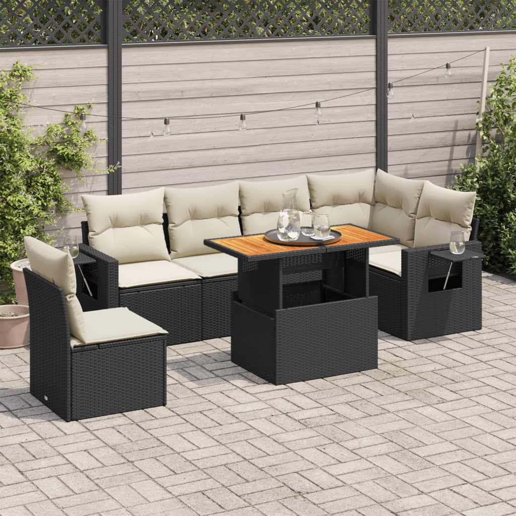 Set canapele de grădină cu perne, 7 piese, negru, poliratan GartenMobel Dekor