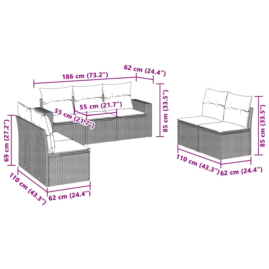 Descriere Set canapele grădină perne, 7piese gri