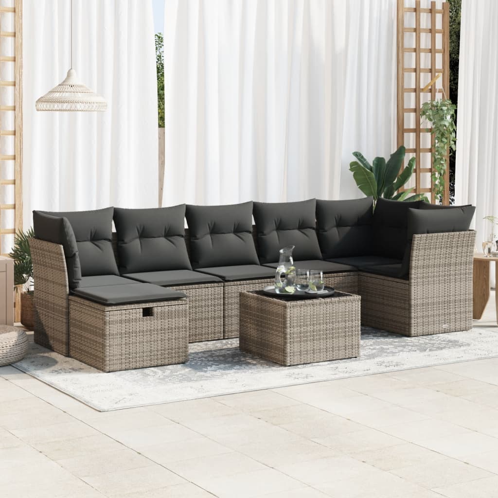 Set canapele de grădină cu perne, 8 piese, gri, poliratan GartenMobel Dekor