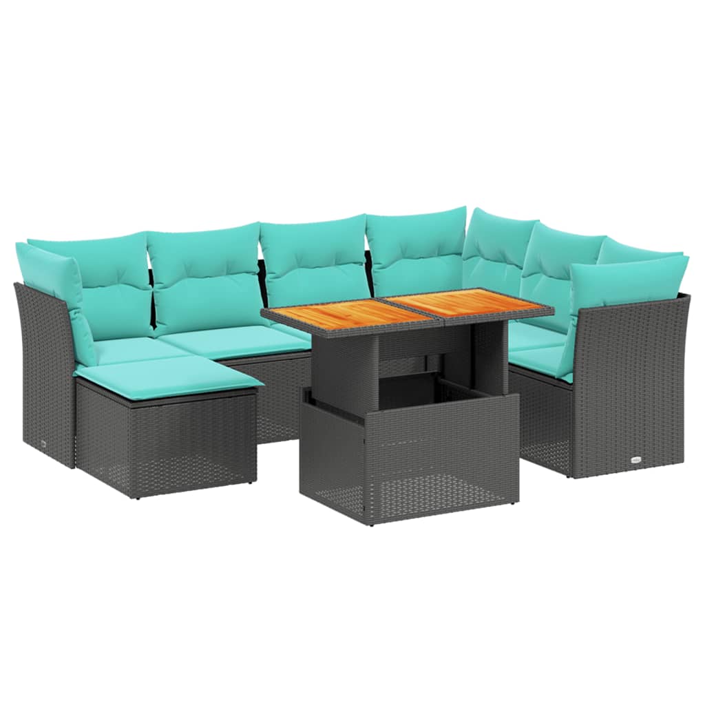 Set canapele de grădină cu perne, 8 piese, negru, poliratan GartenMobel Dekor