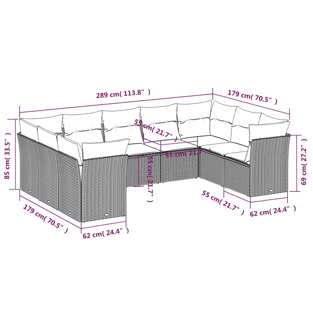 Set canapele de grădină cu perne, 9 piese, maro, poliratan GartenMobel Dekor