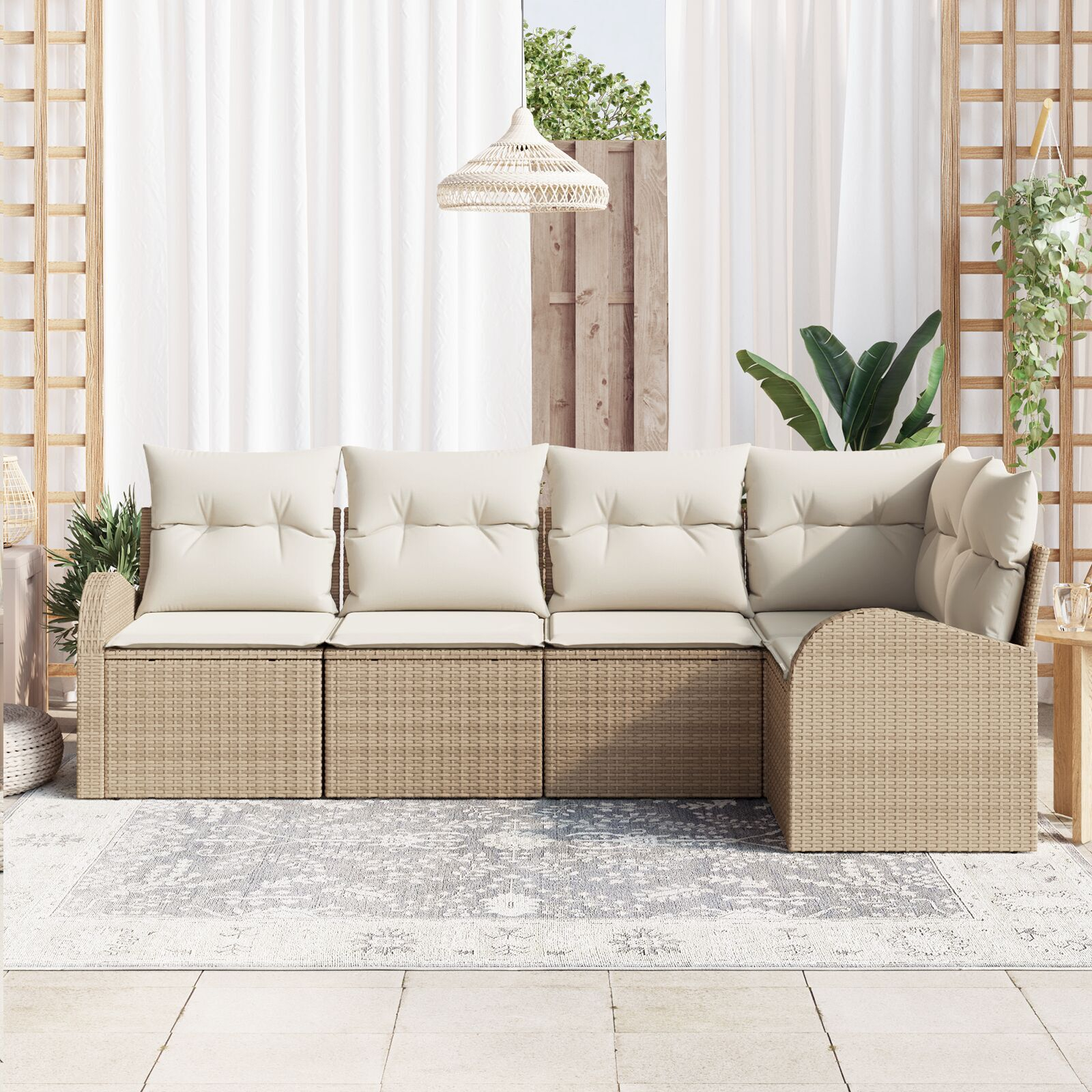 Set canapele grădină 5 piese cu perne Ratan Bej Poliester, Canapea grădină 2 locuri cu depozitare și perne Ratan Bej Poliester GartenMobel Dekor