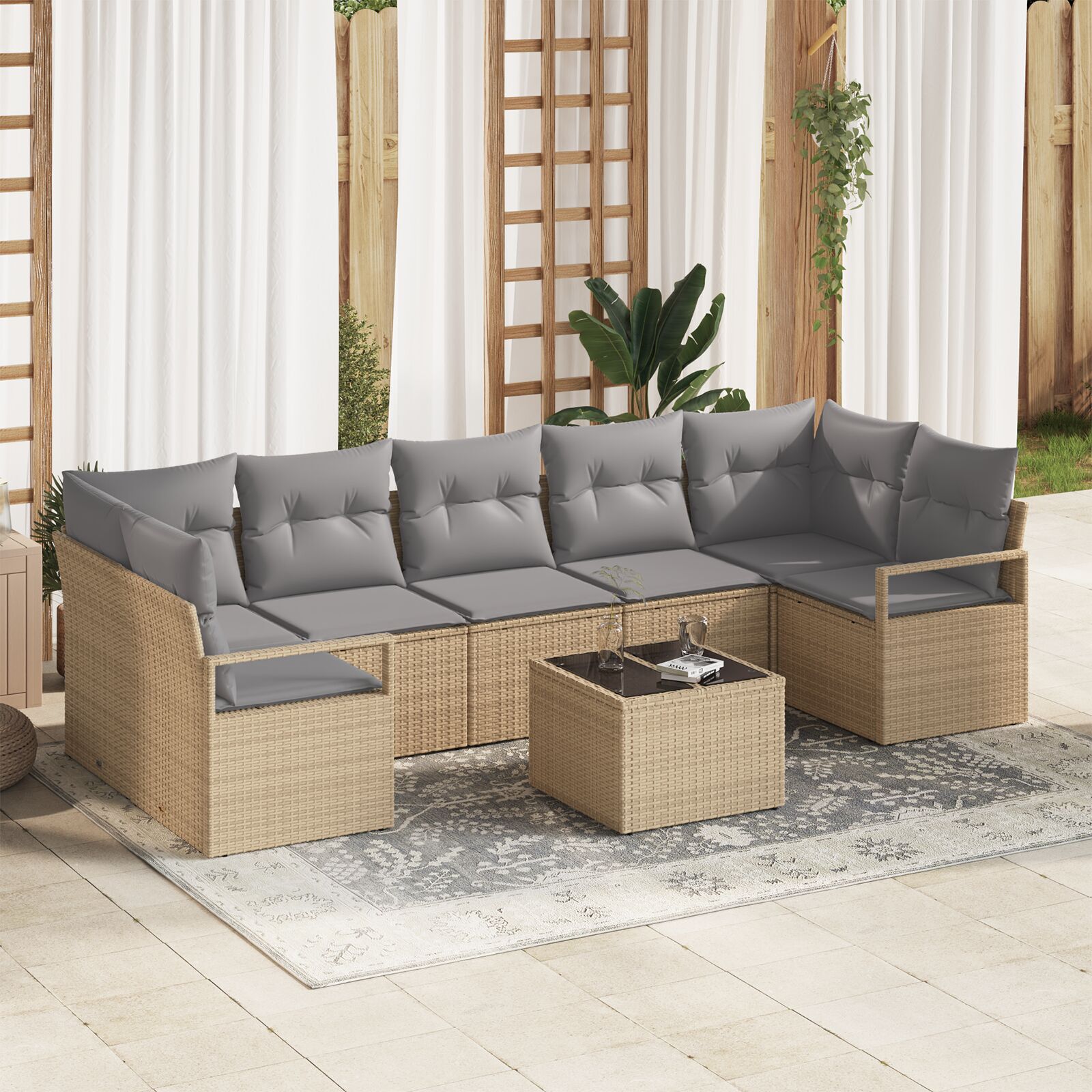 Setul de canapele grădină din 8 piese de la vidaXL oferă confort, stil și utilitate, fiind alegerea ideală pentru relaxare și distracție afară. Combinând nuanțele de bej și gri deschis cu pernele moi, are un look modern, iar ratanul țesut manual aduce eleganță în orice patio, balcon sau grădină.