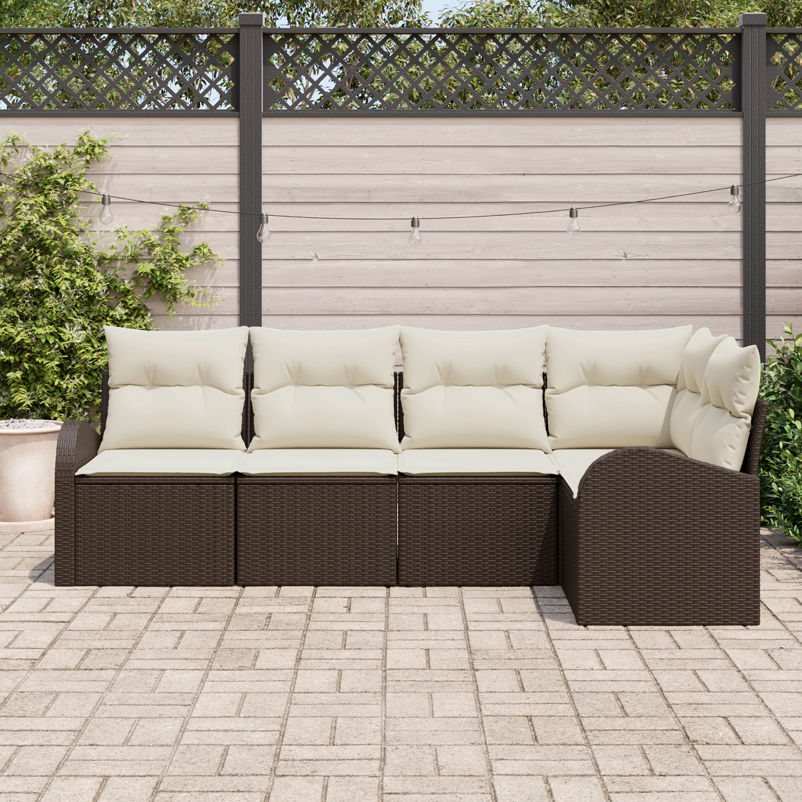 - Culori stylish: Bej și maro oferă un vibe chic, perfect pentru orice spațiu exterior.