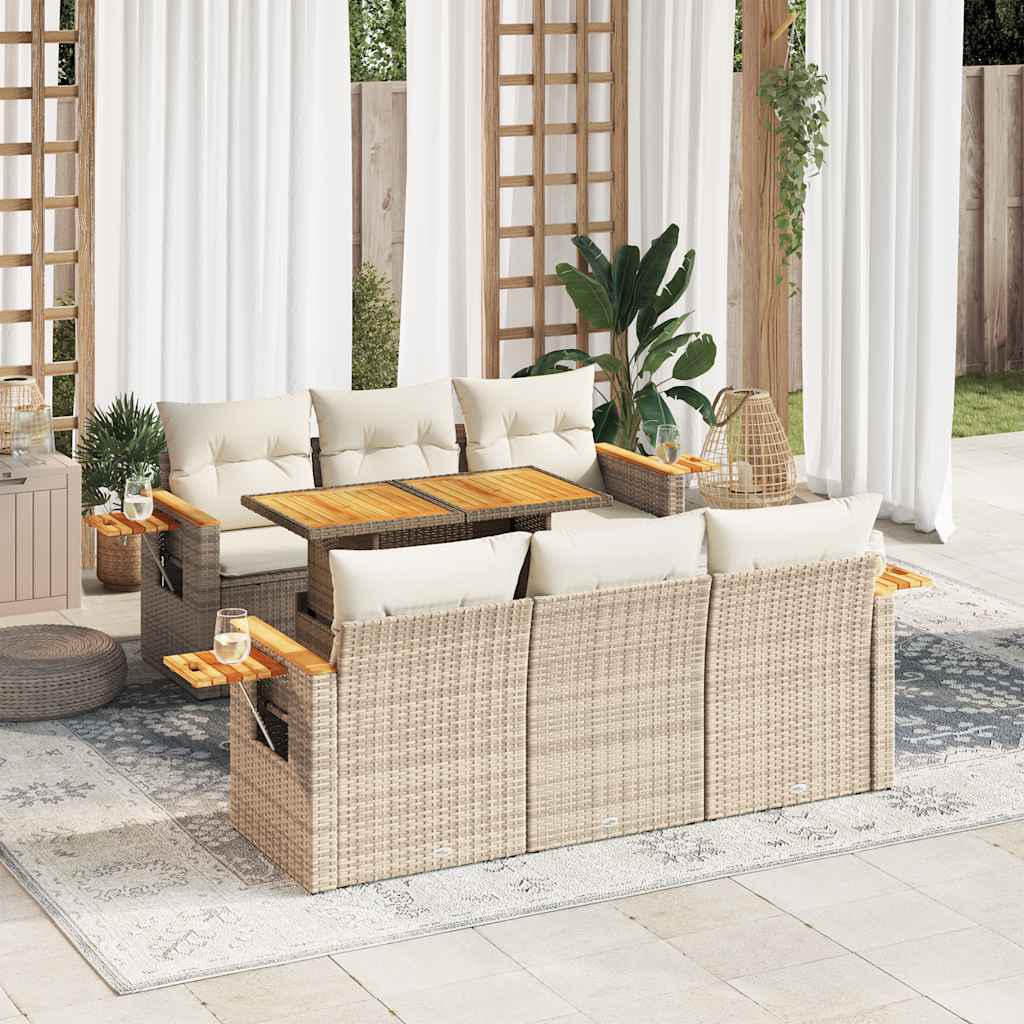 Set canapele grădină cu perne 7 piese bej poliratan/lemn acacia GartenMobel Dekor