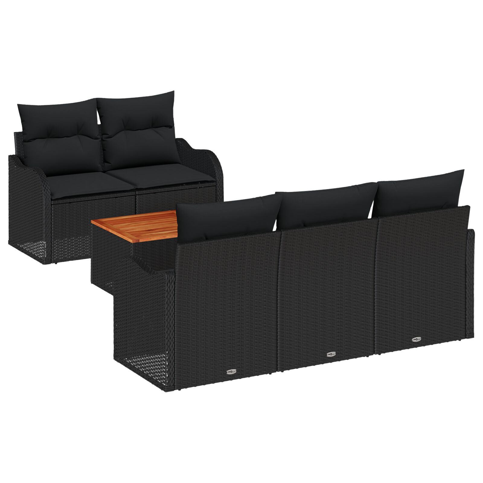Set canapele grădină cu perne Negru Ratan Poli Acacia, Canapea grădină 2 locuri cu depozitare și perne Negru Ratan Poli GartenMobel Dekor
