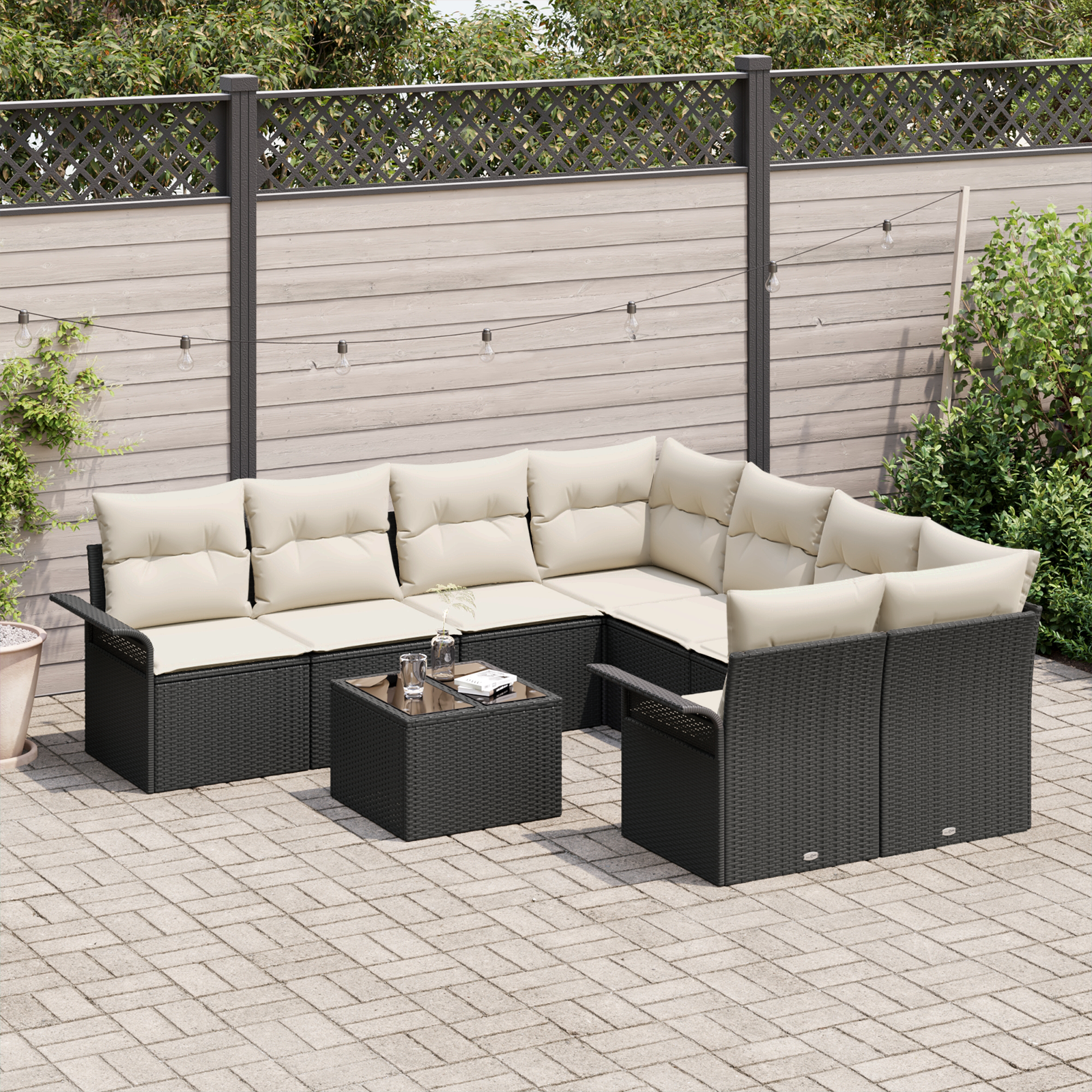 Set canapele grădină cu perne Negru Ratan Poli GartenMobel Dekor