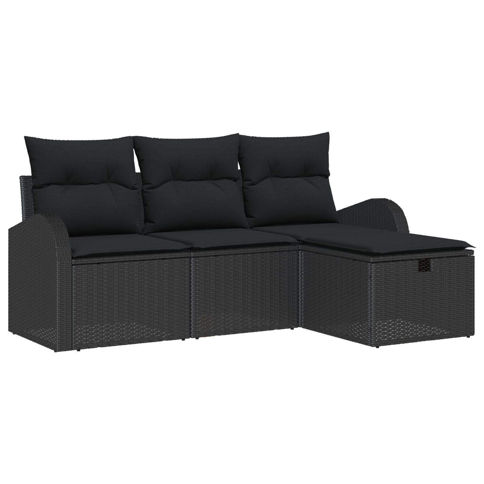 Set Canapele Grădină în 4 piese cu Perne Negru Ratan Polimeric GartenMobel Dekor