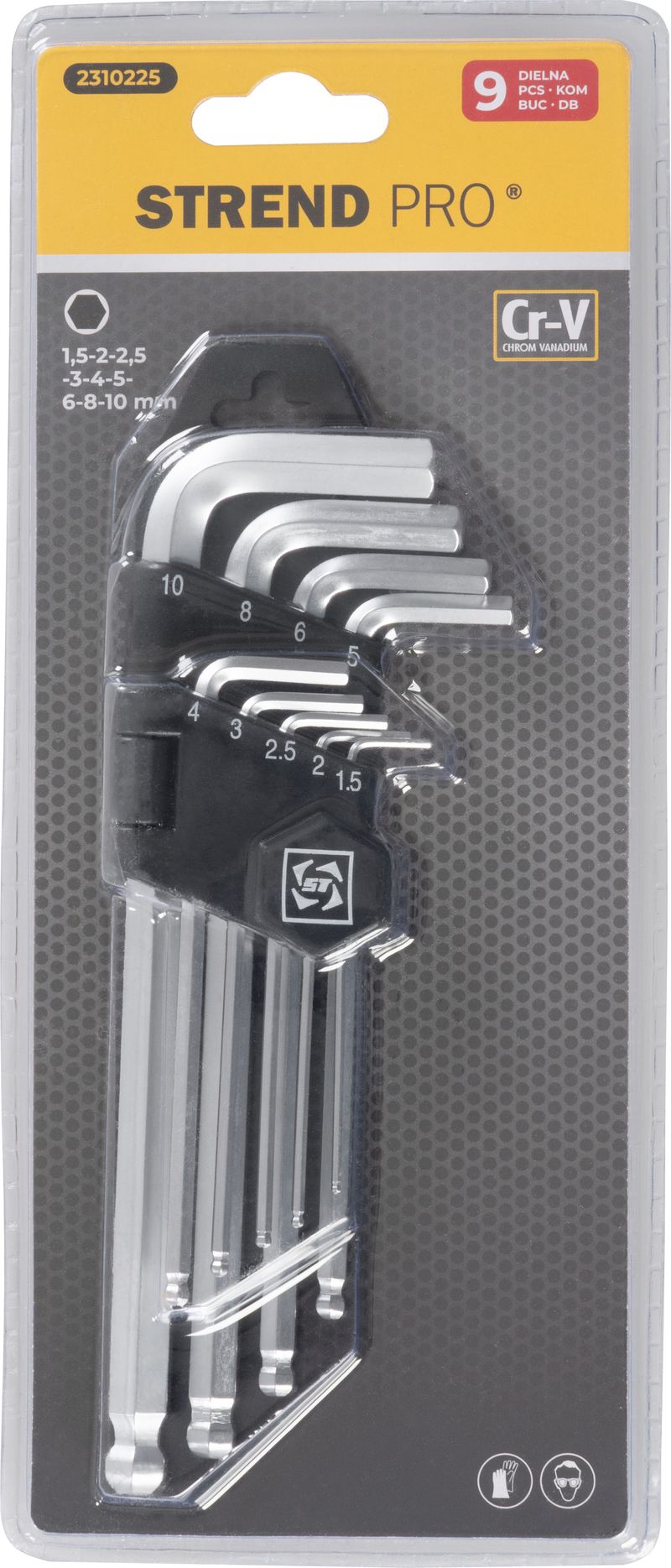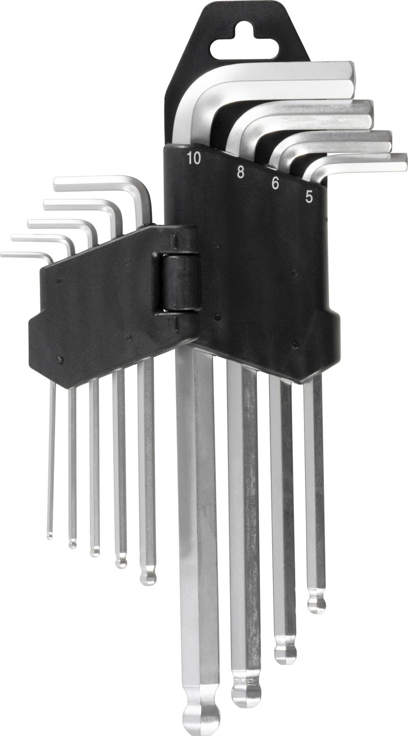 Setul de chei imbus Strend Pro HK0045 include 9 chei Hex lungi, cu cap sferic (bilă), pentru acces mai ușor în zone greu de ajuns și strângere rapidă la diferite unghiuri. Este potrivit pentru lucrări de mentenanță, bricolaj, biciclete, mobilier și service.