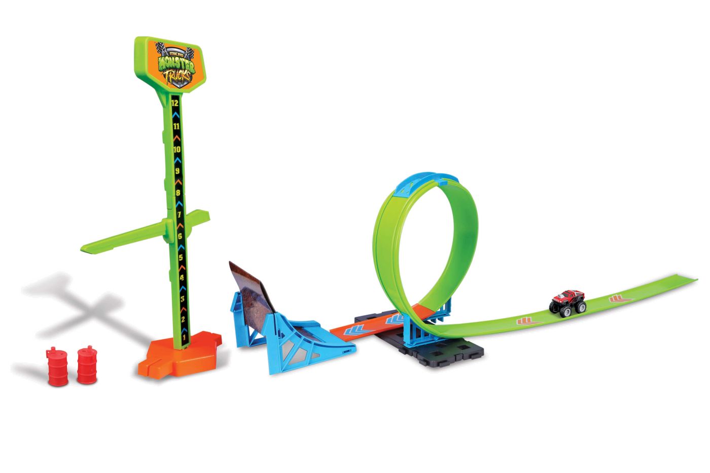 Transformă joaca de acasă într-un adevărat spectacol cu setul circuit Maisto Micro Monster Truck. Conceput pentru copiii pasionați de viteză și acrobații, acest circuit cu monster truck include un vehicul micro cu mecanism pullback, o buclă spectaculoasă, rampă de lansare și marcator de înălțime ajustabil pentru provocări cât mai distractive.