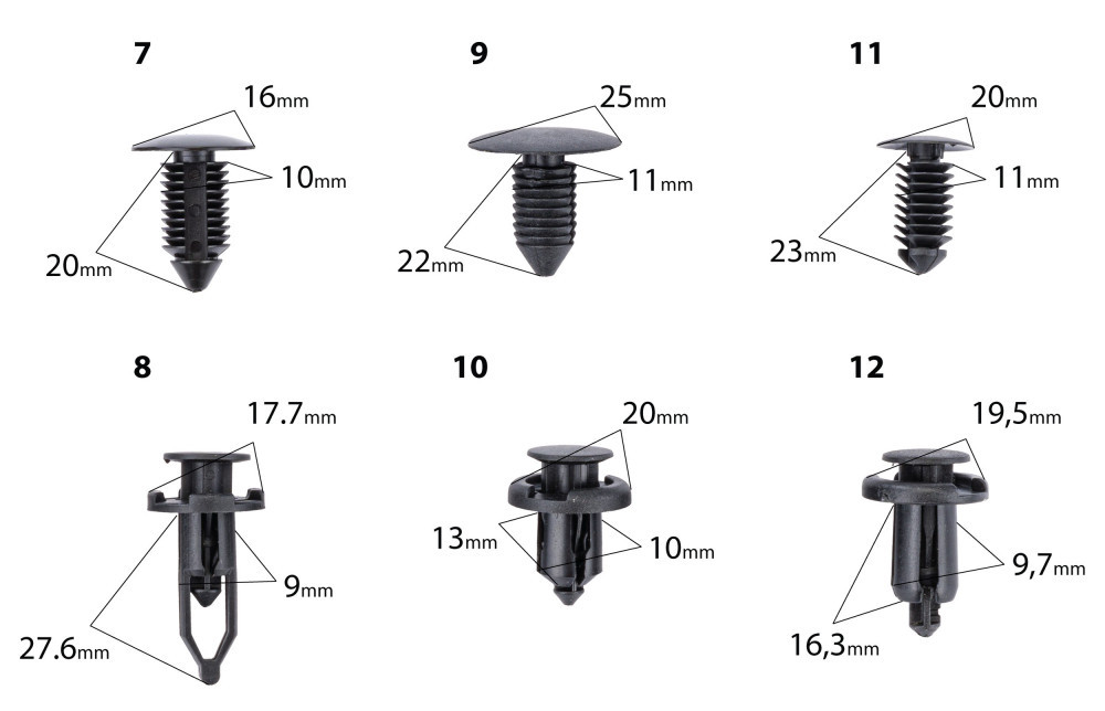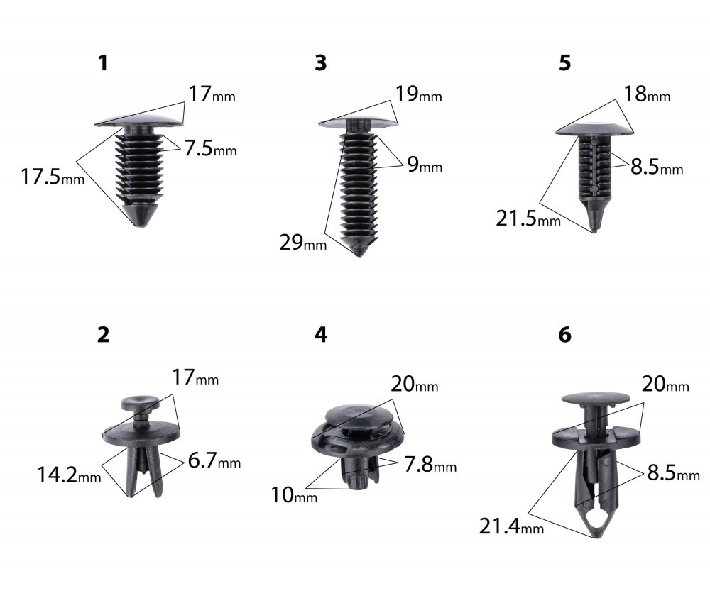 - Compatibilitate larga – potrivit pentru multe modele auto (clipsuri in forme si marimi diferite)